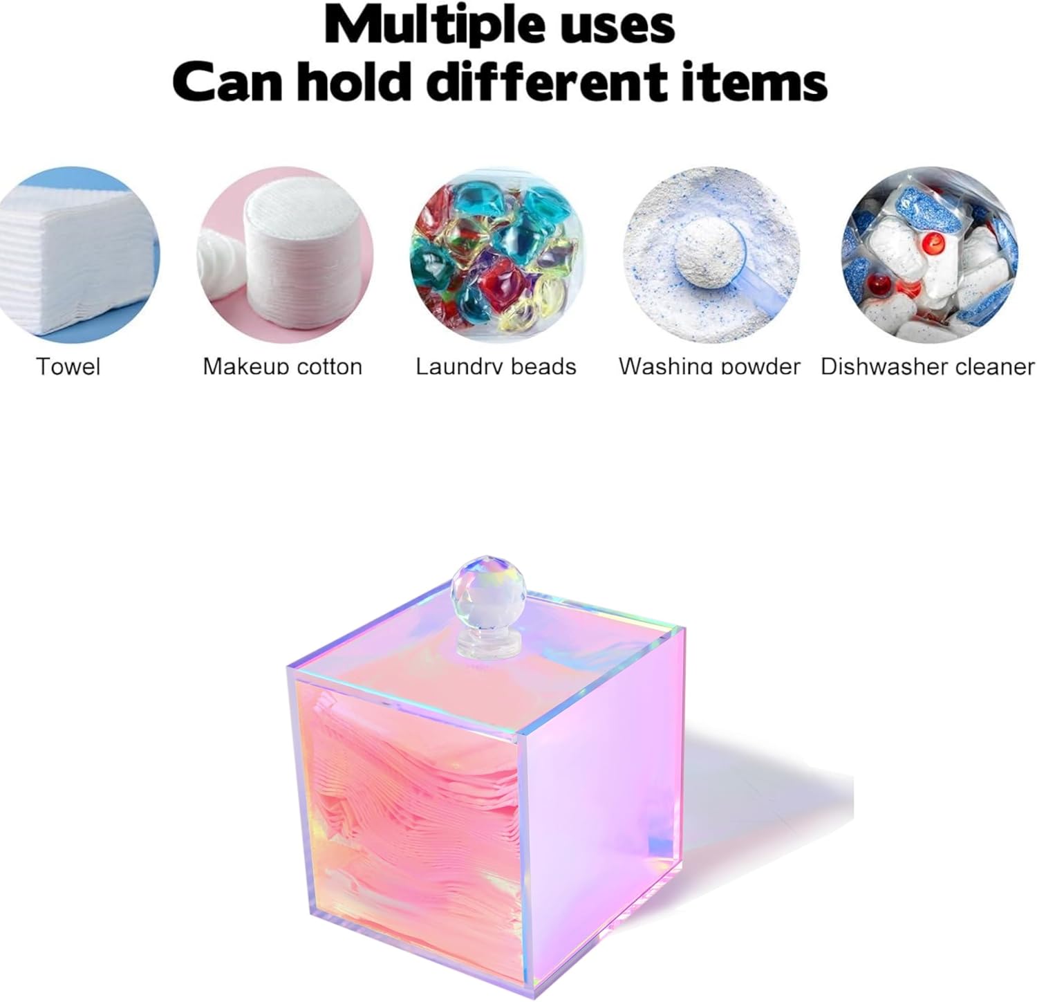 - Clear Storage Box with Diamond Handle: This Face Towel Storage Box come with acrylic diamond handle. The transparent material is combined with the multi-faceted cutting process, shining like a real diamond ,and can be attached to any position of the lid.Easily open and close the lid and create a unique rainbow decorative effect through light refraction.