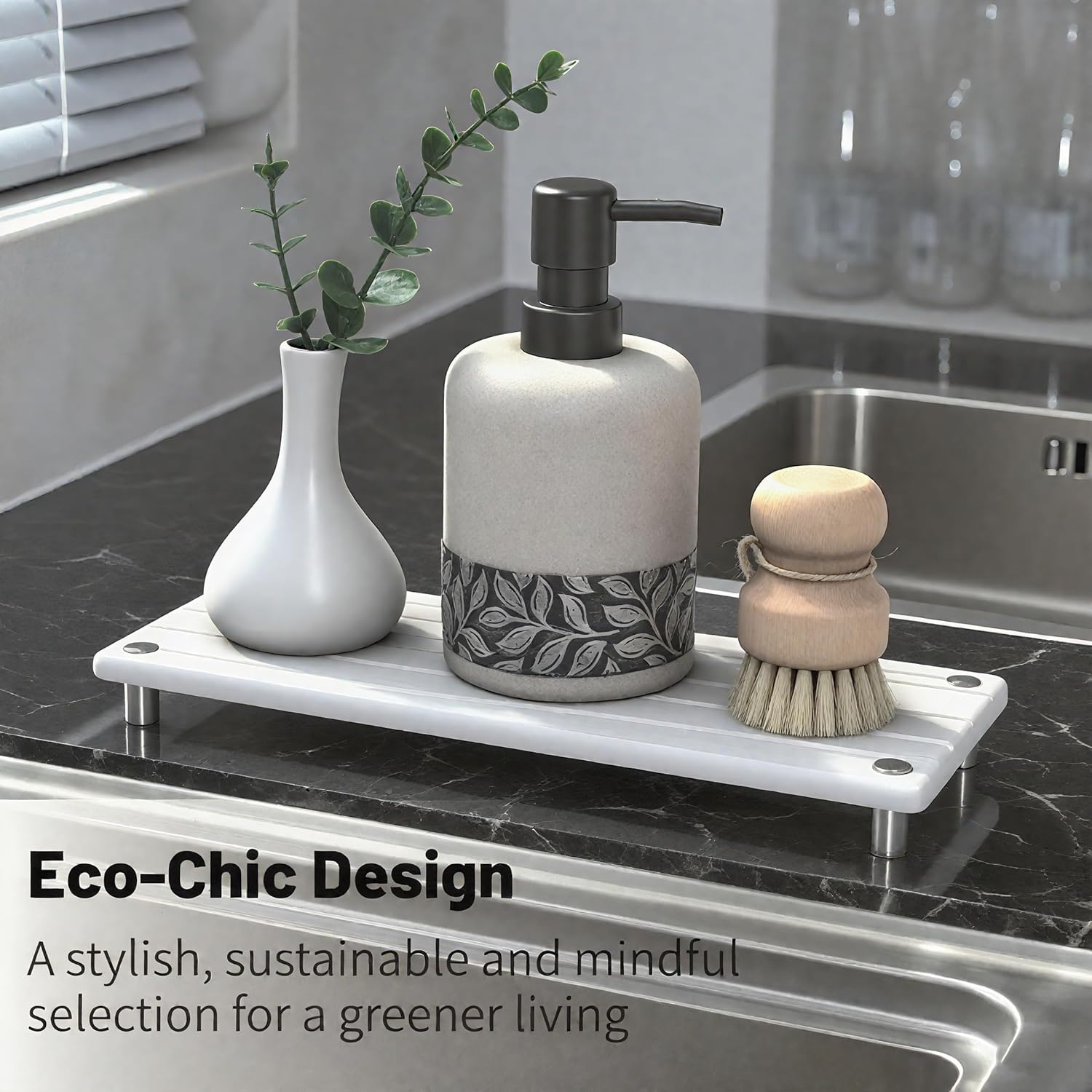 Quick Dry Sink Caddy Kitchen Sink Organizer, Water Absorbing Stone Tray for Sink, Stone Drying Tray, Diatomite Faucet Mat & Protector, Dispenser Sponge Holder, Stone Soap Tray for Bathroom Counter