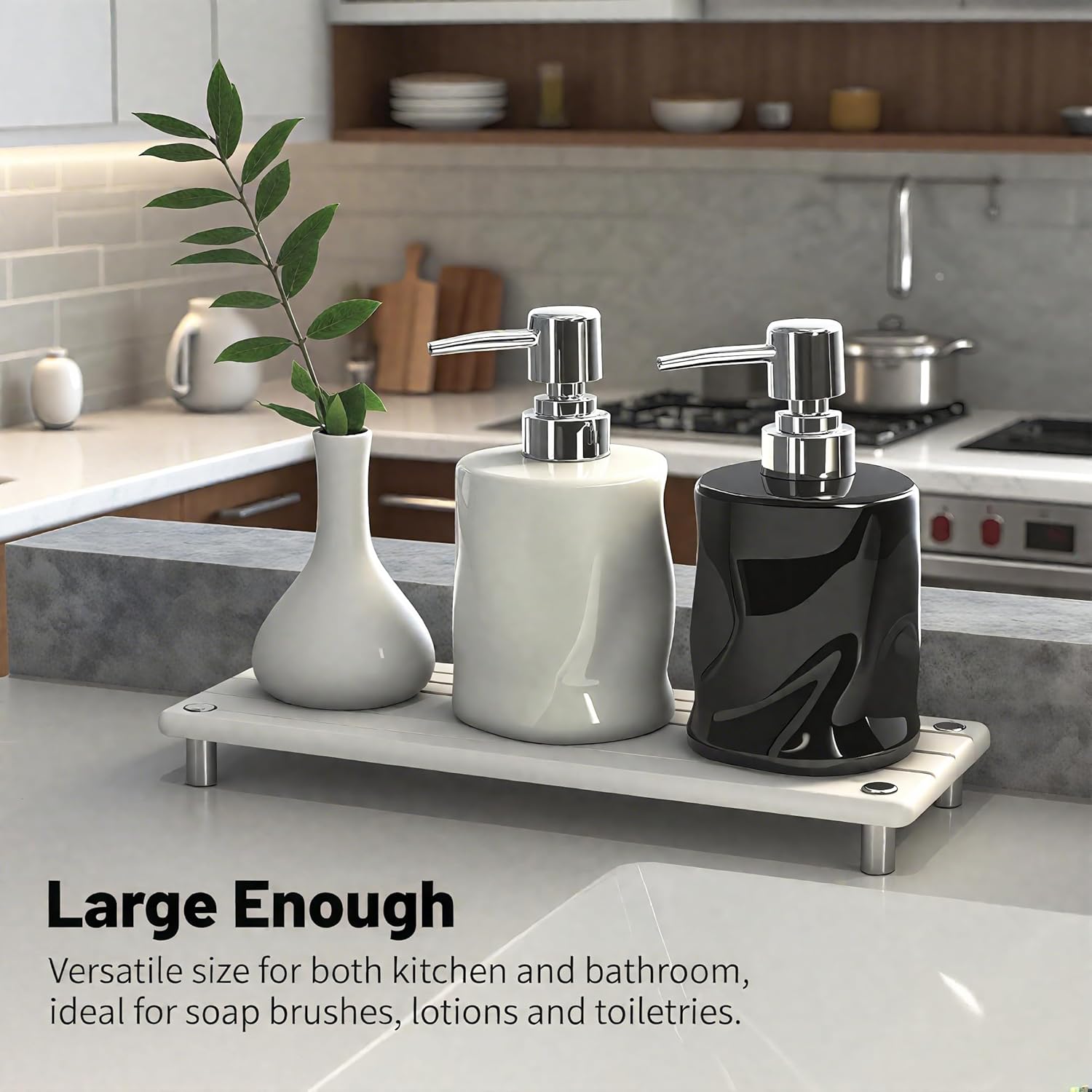 - Multifunctional Water Absorbing Stone Tray for Sink ---- Using this stone drying tray for your soaps / brushes / bottles / Cups / Sponge / Dispenser in the bathroom counter or kitchen sink. The fast drying sink caddy provides you with a neat and orderly space for your home.