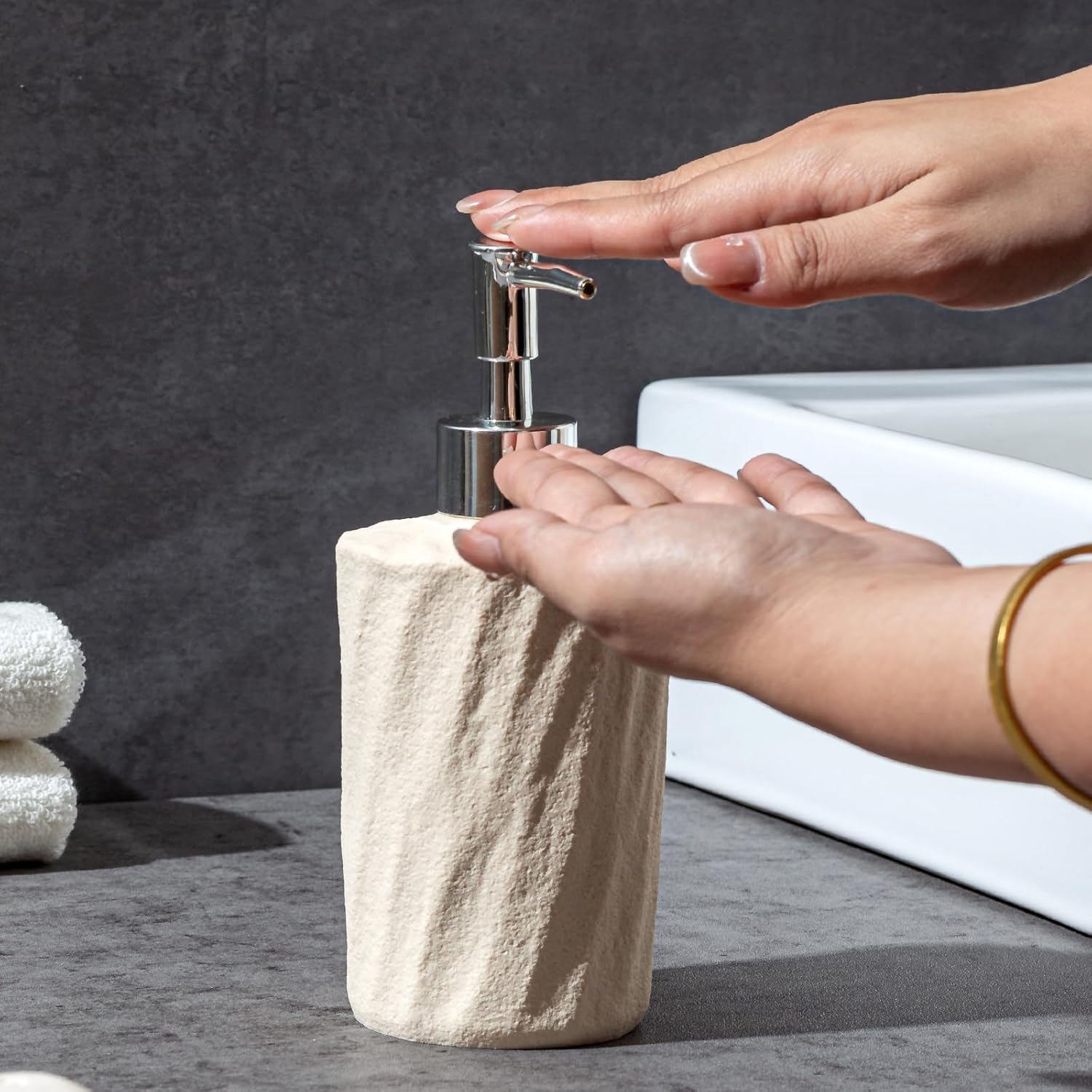 - 4 Piece Bathroom Accessory Set for Your Daily Needs - Includes 1 x soap dispenser 340ML 11.5OZ, 2 x Tumblers, 1 x Bar soap dish bar soap holder bar soap saver. Our Resin bathroom accessories set keeps the bathroom organized elements that complement your bathroom perfectly, adding a fashion feel to your bathroom. This bathroom accessory set essential is ideal for your bathroom and many more.