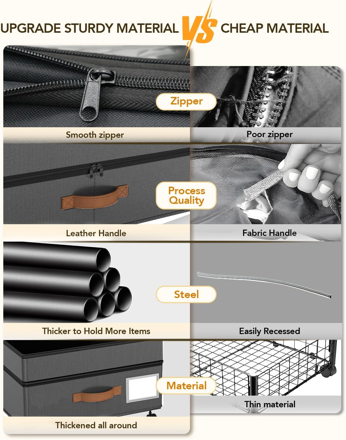 - 【Heavy-Duty & Durable Construction】Built to last! The under the bed organizer combines reinforced metal frames and premium Oxford fabric for superior strength—no sagging or bending, even when packed full. The sturdy metal base adds extra support, making it ideal for bulky comforters, books, or seasonal wardrobes.