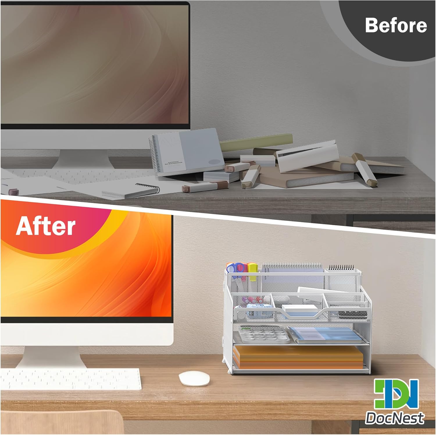 - Easy Assembly and Maintenance: Simplify your office organization with the DocNest tray organizer, which is easy to assemble and maintain. Its modular design allows for quick setup, and the mesh compartments are easy to clean, ensuring that your workspace remains tidy and organized with minimal effort. This desktop organizer is a breeze to maintain, saving you time and effort in keeping your office space pristine