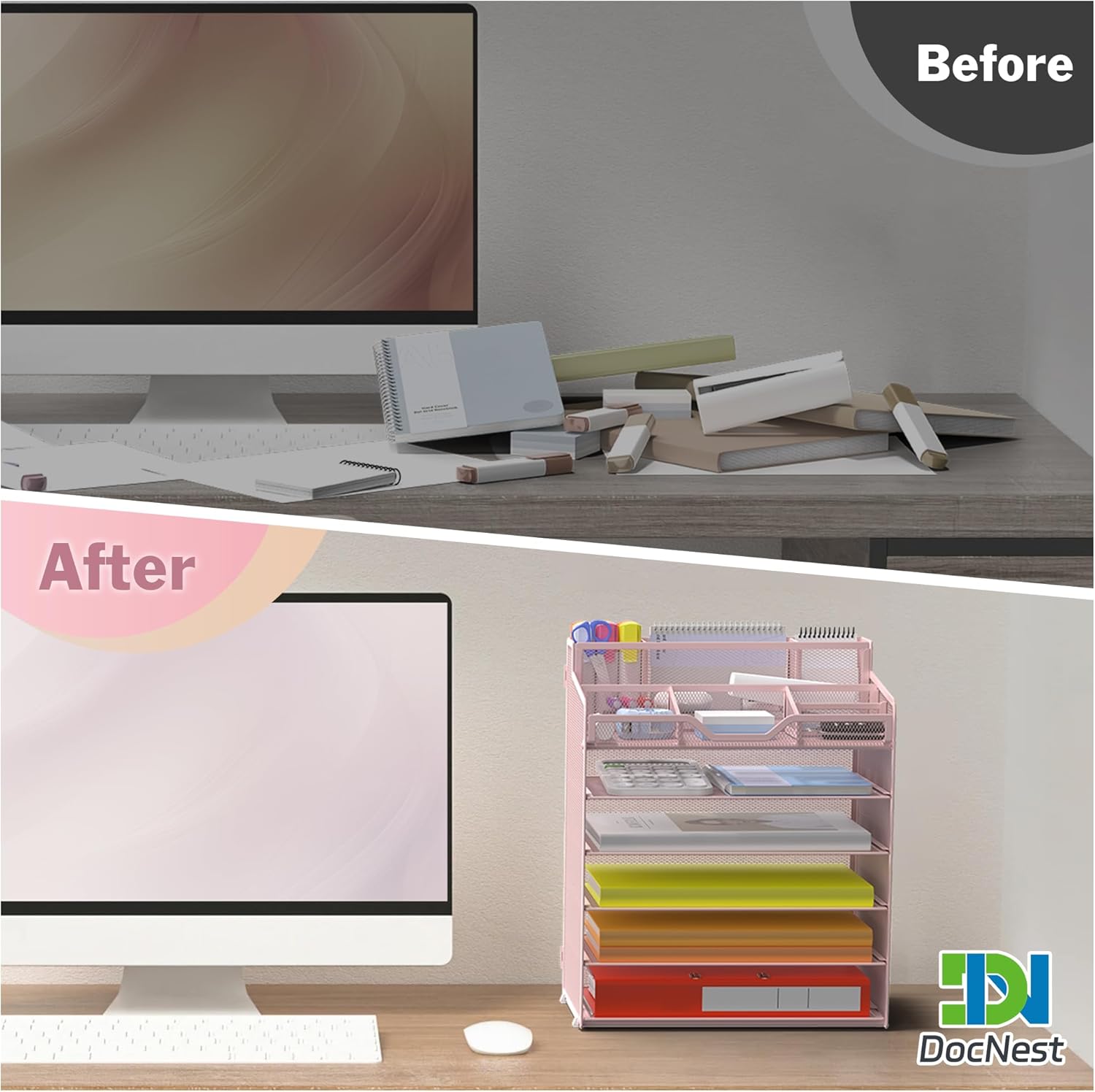 - Maximize Your Workspace Efficiency: Upgrade your office organization with the DocNest 6-tier paper letter tray organizer. This multi-functional desk organizer is designed to keep your documents, papers, and office supplies neatly sorted and easily accessible. With 5 adjustable compartments, you can customize the space to fit your needs, whether it's for files, stationery, or other essentials