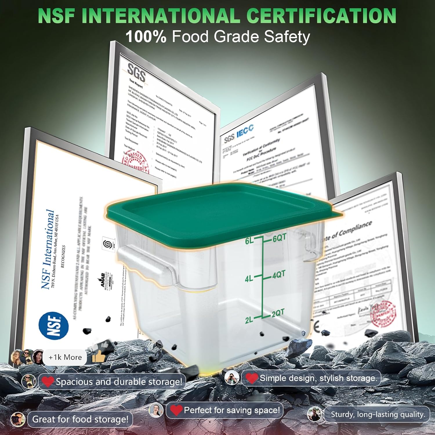4QT NSF Food Storage Containers with Lids: 4 PCS [Total Food Grade][Hot&Cold Resistant] Commercial Clear Food Storage Containers for Restaurant Kitchen Proof Dough, Measuring Spoons Included(Green)