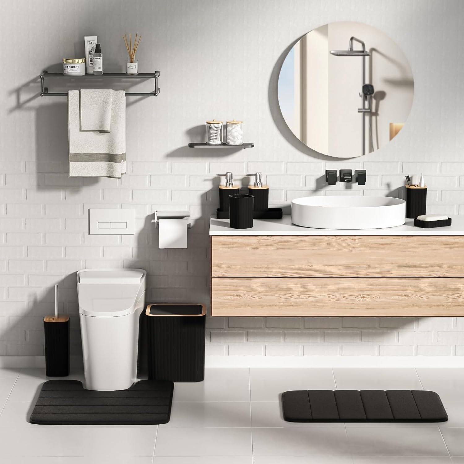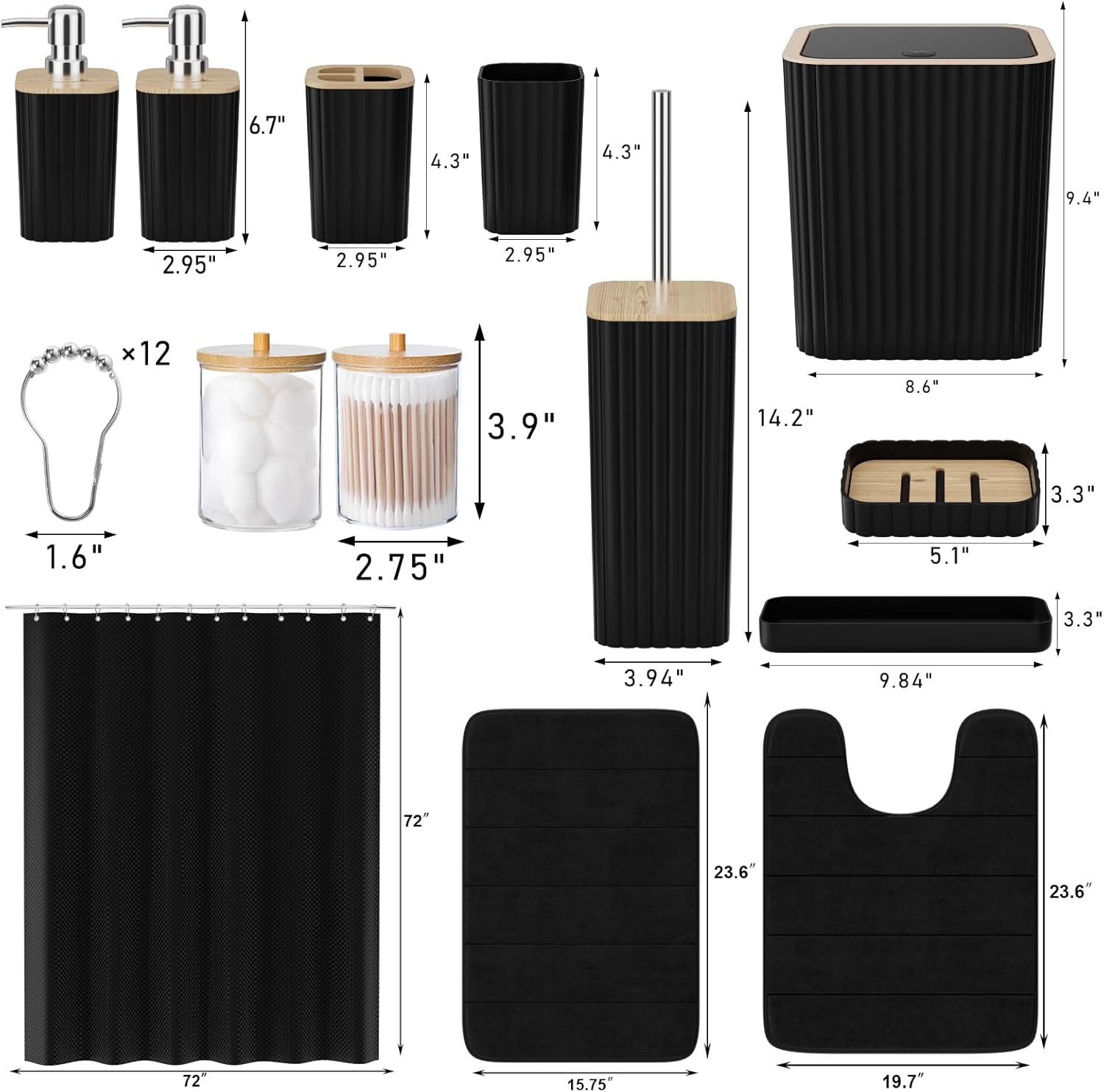 Bathroom Set - 25PC Black Bathroom Set with Shower Curtain and Rugs, Bathroom Accessories Set, Black Shower Curtain Set with Bathroom Trash Can