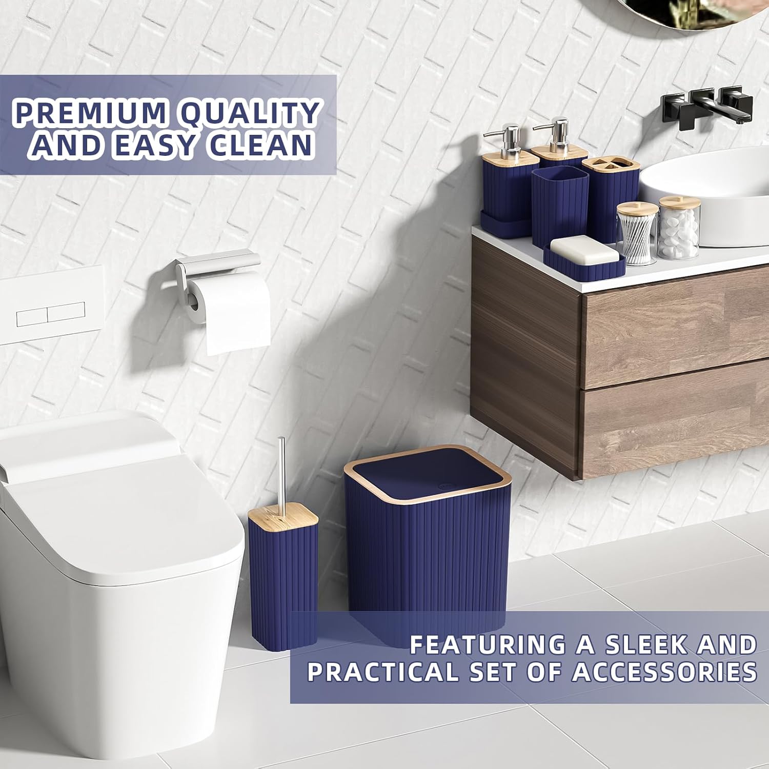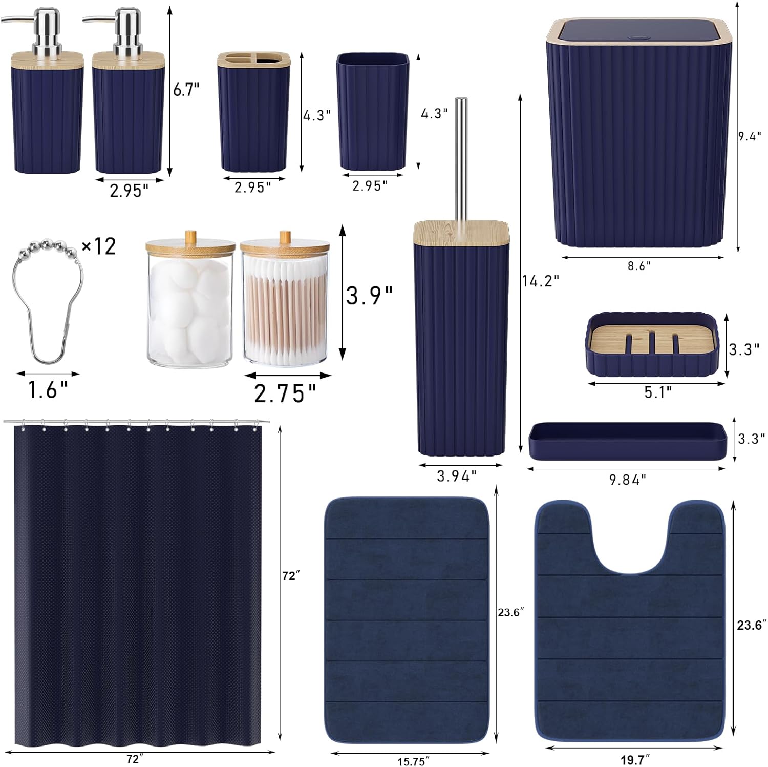 Bathroom Set - 25PC Blue Bathroom Set with Shower Curtain and Rugs, Bathroom Accessories Set, Blue Shower Curtain Set with Bathroom Trash Can