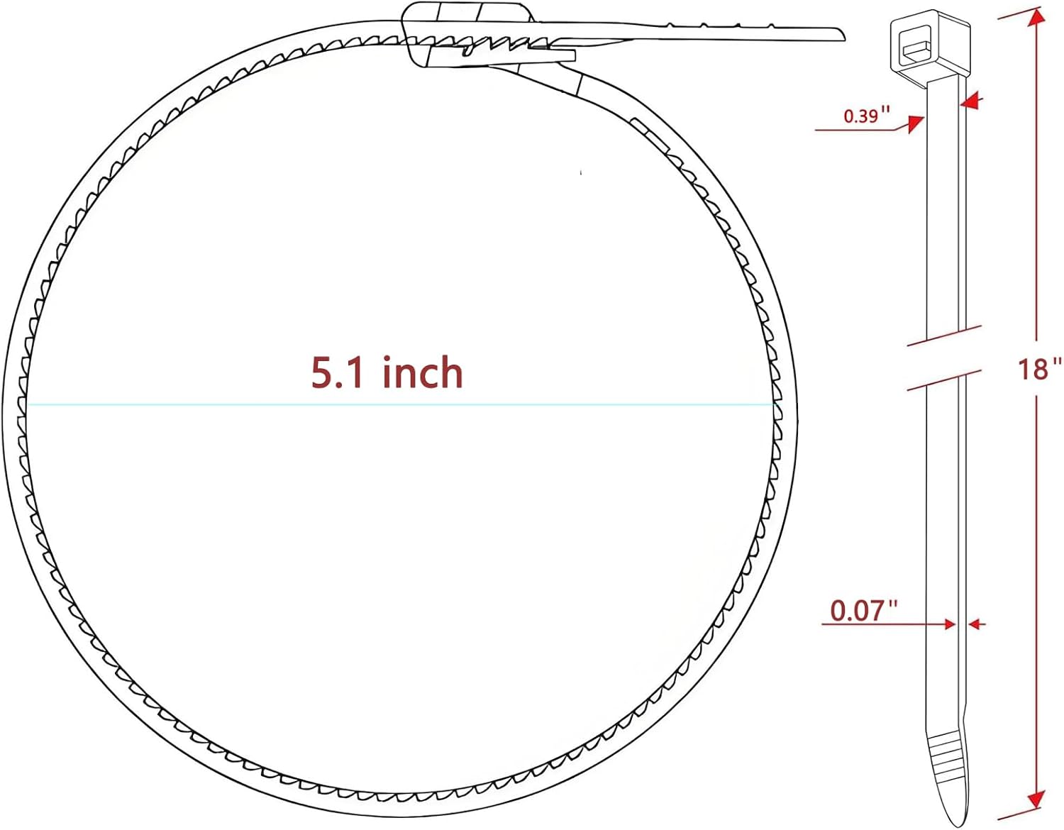 - 【Heavy-Duty zip ties & Ultra Strong】 18-inch (450mm) extra-large white zip ties with a tensile strength of 250 lbs, designed for heavy-duty use. Wider 0.4inch(10mm) width and thicker nylon PA66 material ensure superior durability for industrial, outdoor, and household applications.