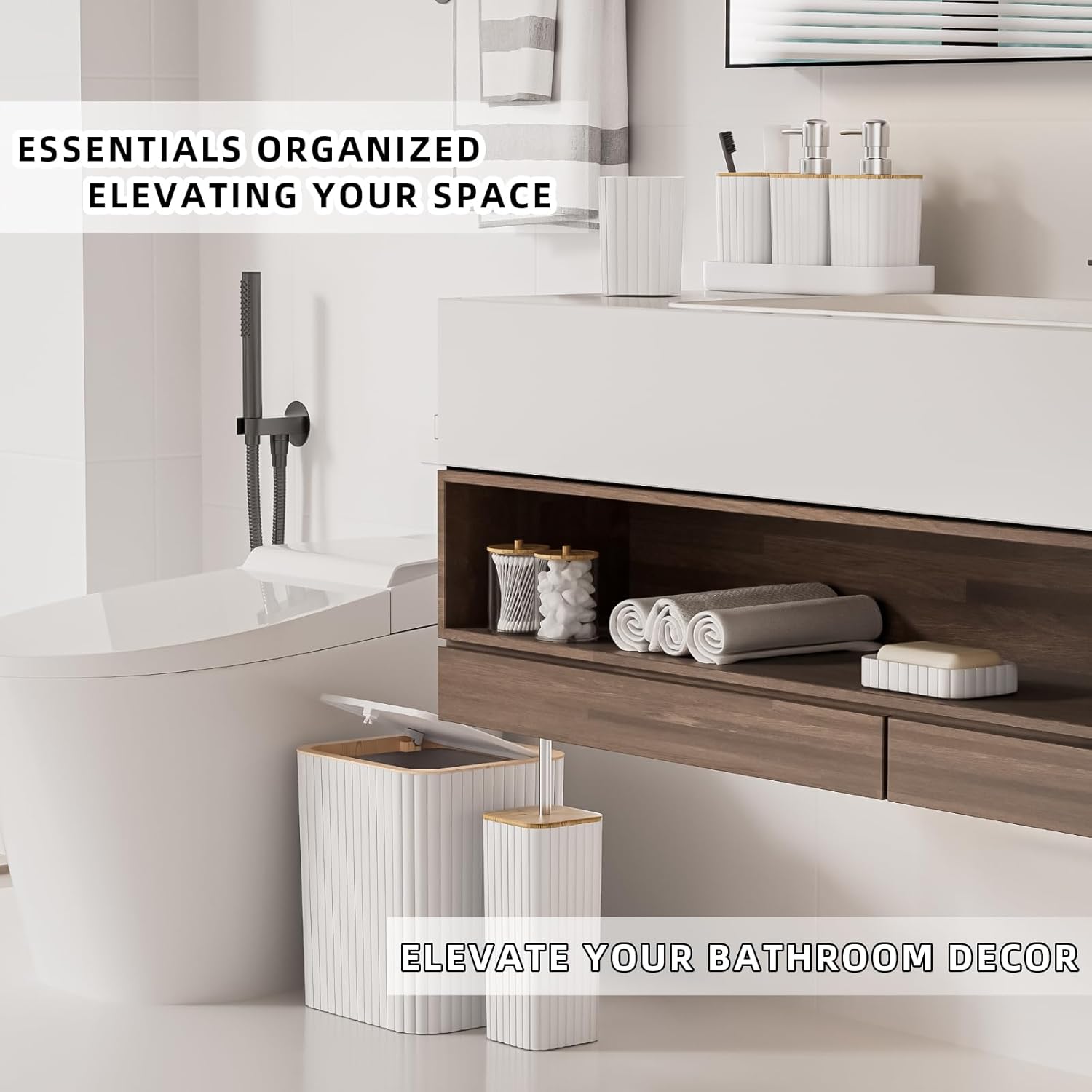Bathroom Accessories Set - Elegant White Bathroom Set, 10PC Bathroom Accessory Set, Toilet Brush, Trash Can, Qtip Holder Dispenser & Soap Dispenser