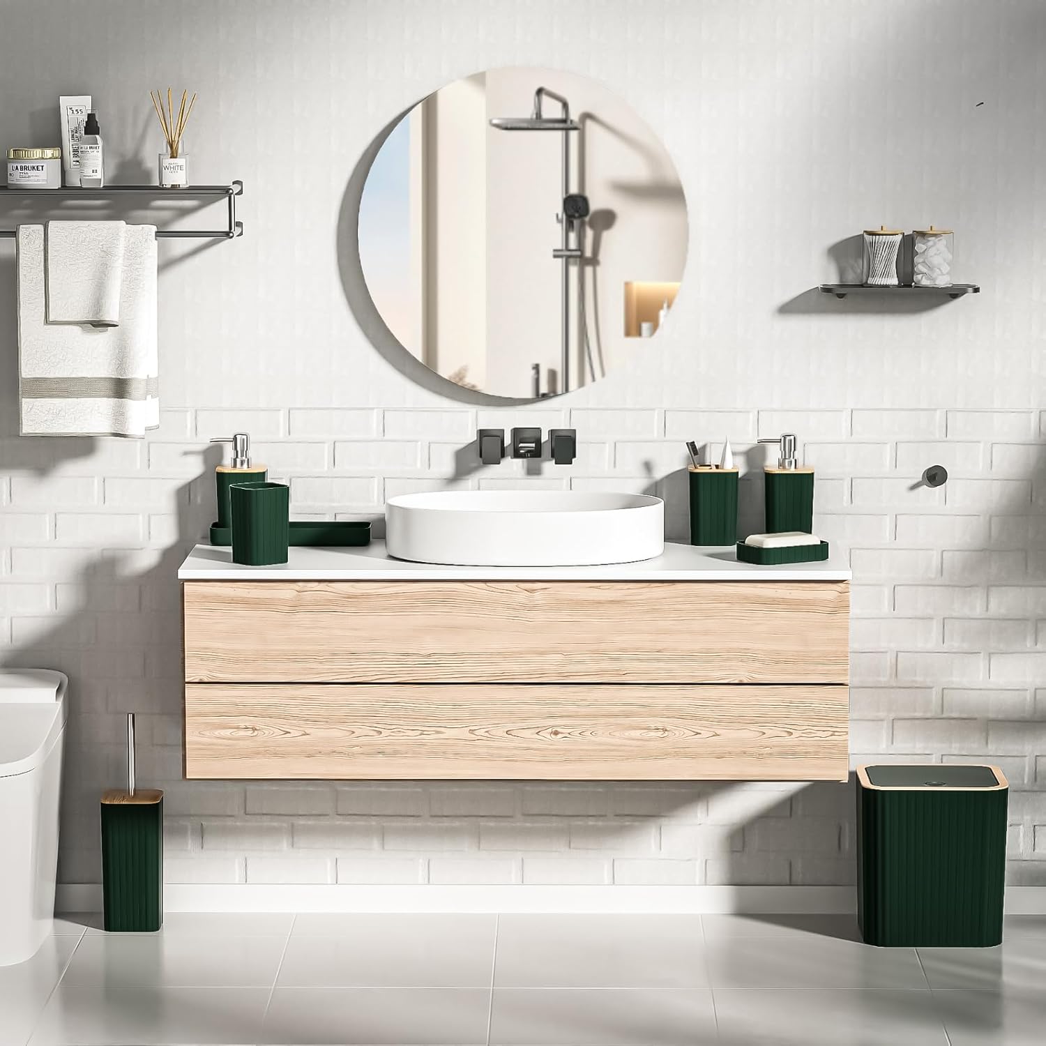 Bathroom Set - Elegant Green Bathroom Set, 10PC Green Bathroom Accessories Set, Bathroom Sets with Toilet Brush, Bathroom Trash Can
