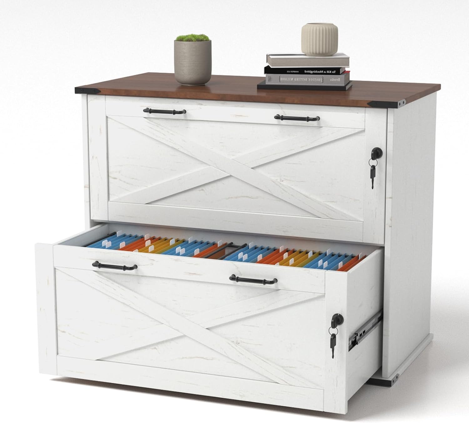 - 【Lockable for Privacy】The 2 large drawers for hanging folders can be independently locked, and each lock is accompanied by 2 keys for added security.