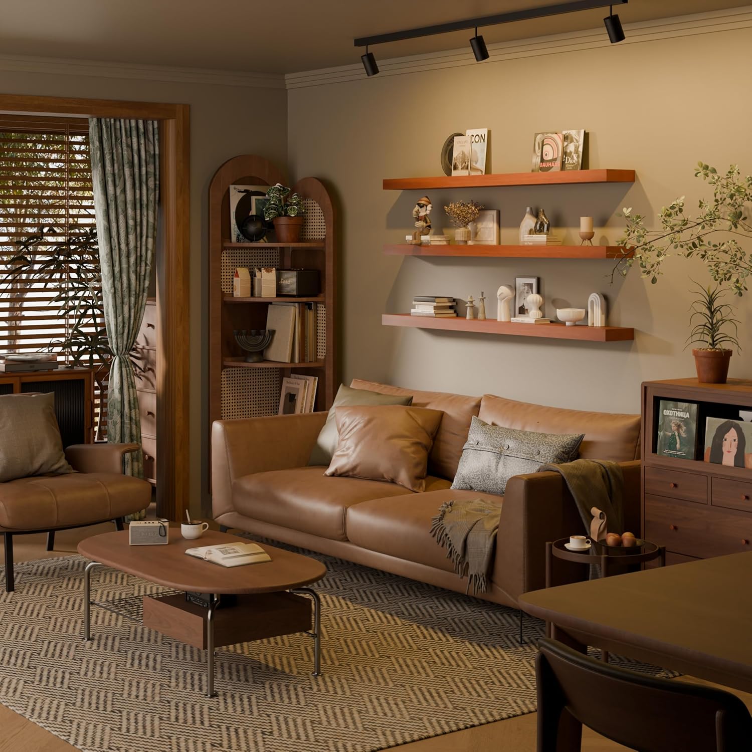 - 【Retro Floating Shelves】Add a vintage vibe to your home decor with our retro floating shelves. These shelves for room wall capture the charm of yesteryears with a rustic appeal that fits a wide range of styles, from traditional to modern. Perfect for bedroom shelves for wall or living room displays, they make a statement without overpowering your existing decor