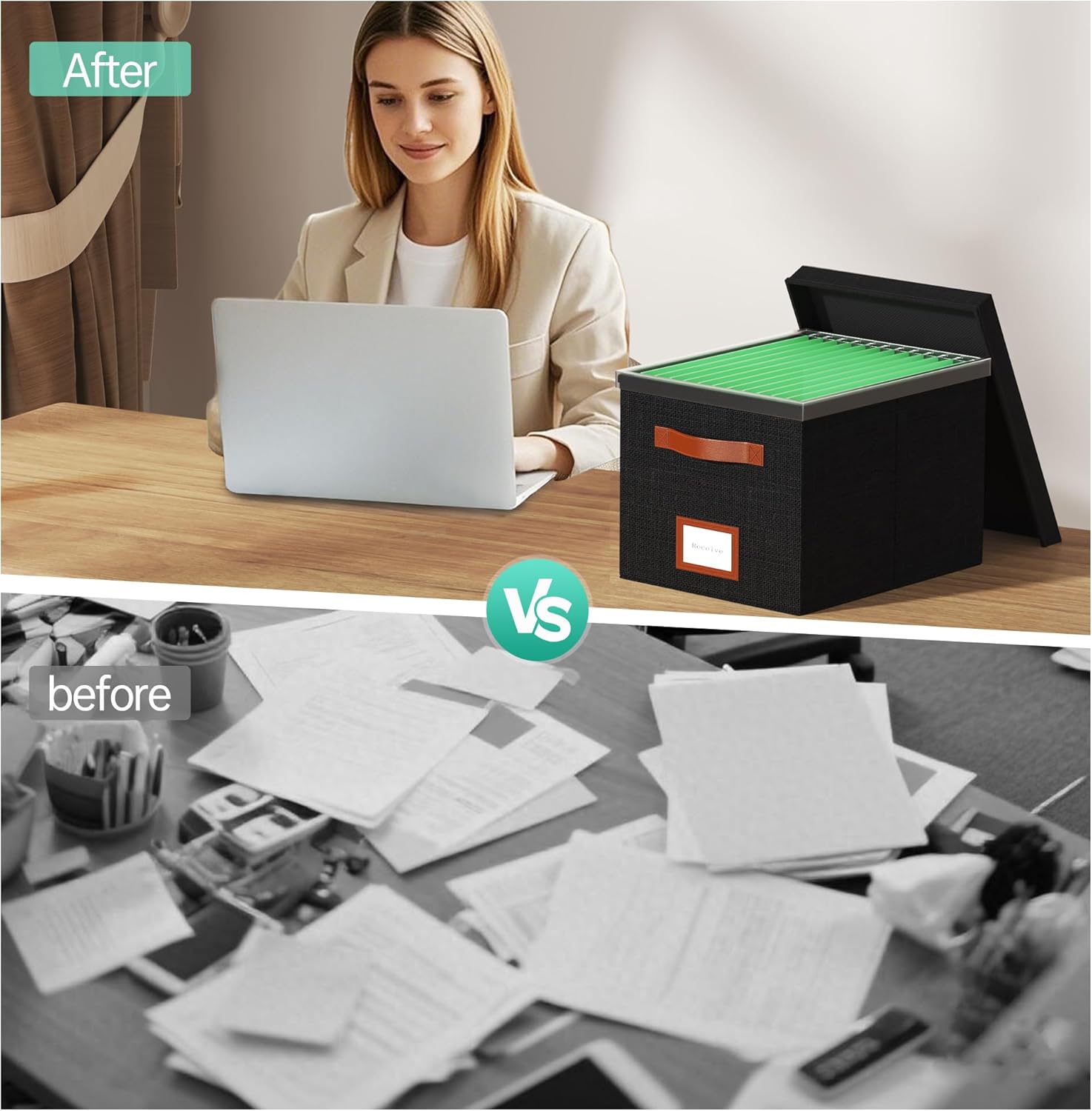 - [High Quality and Durable]- The file box with lid fits letter-sized files, file storage body and the internal structure have undergone strict quality inspection to ensure its durability and stability. Whether it is heavy documents or daily office supplies, it can easily carry them and will not deform after long-term use.