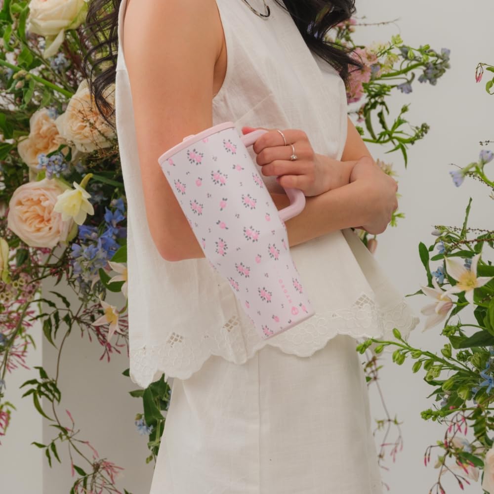HydroJug Traveler - 32 oz Water Bottle with Handle & Flip Straw - Fits in Cup Holder, Leak Resistant Tumbler-Reusable Insulated Stainless Steel & Rubber Base - Gifts for Women & Men, Wildrose