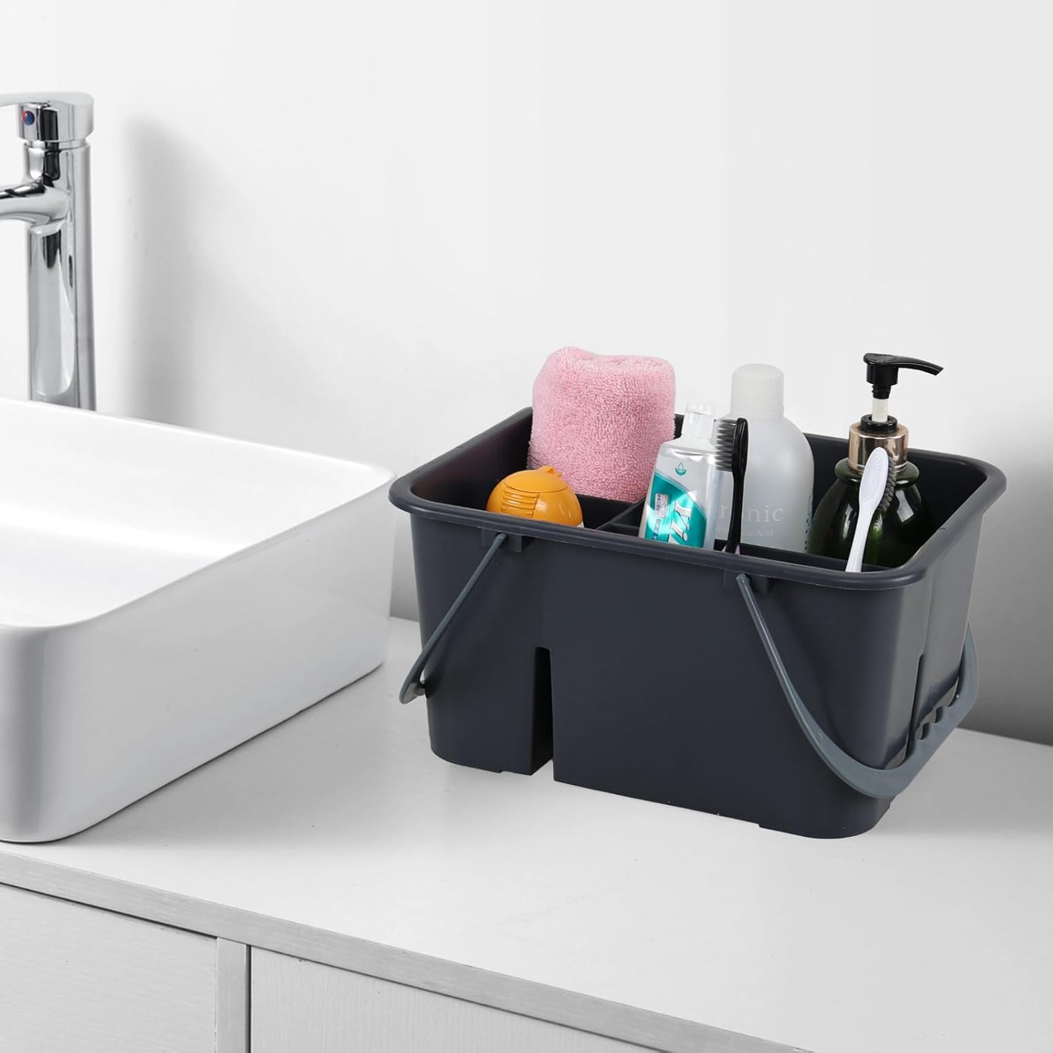 4 Compartment Plastic Utility Tote Caddy, Cleaning Caddy Basket with Handle, Grey