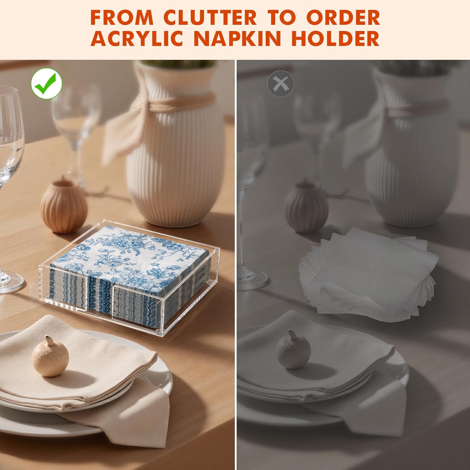- 💦【EXCELLENT QUALITY】The napkins holders is made of high quality acrylic for a sturdy construction and great durability. Product size: 7.4*7*2in.