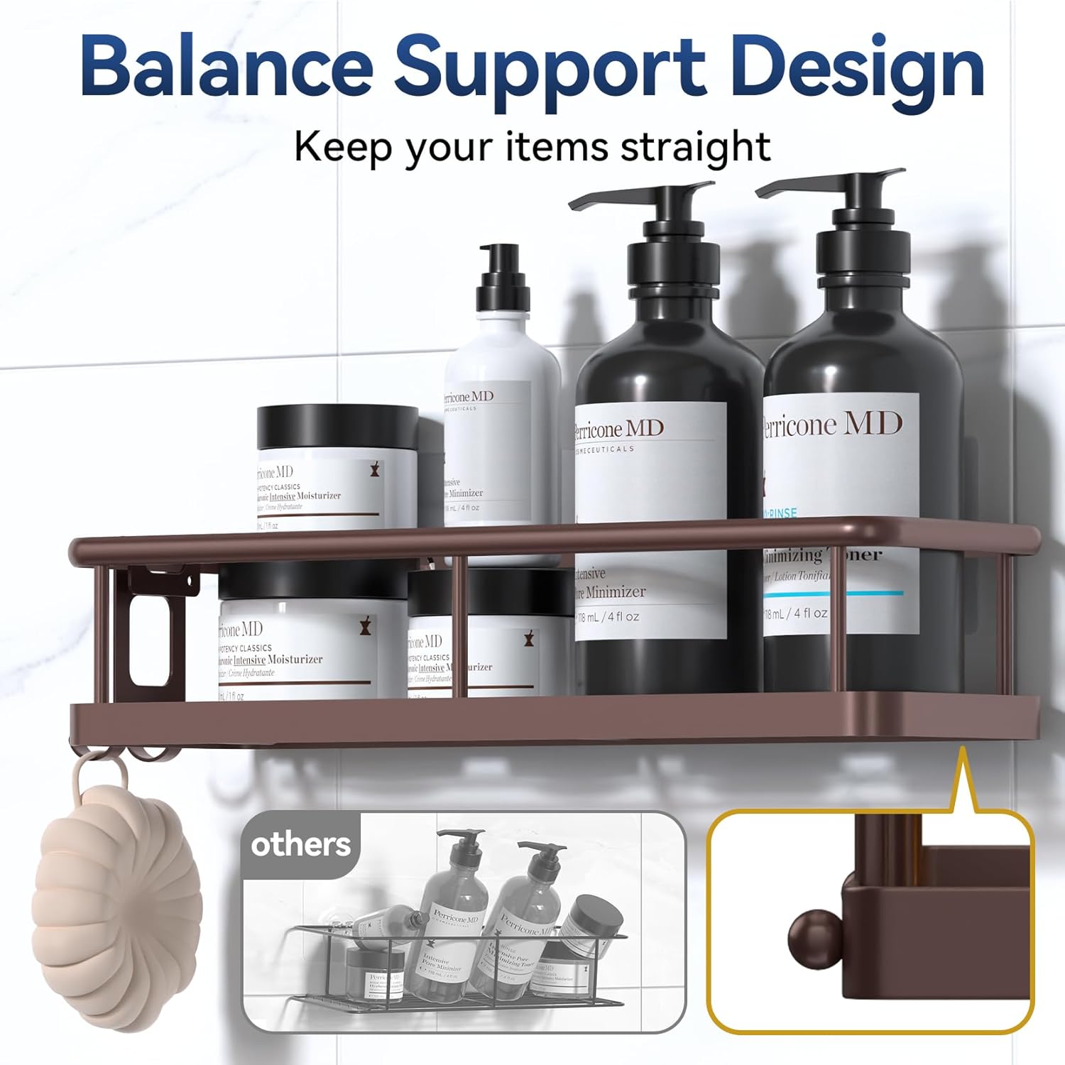 - 【Weight 40 Pounds, Super Adhesive Force】Double hooks allow the shower shelf for inside shower to hold 40 pounds. Small round beads on the back for greater stability. Keep bottles in the shower basket in the bathroom so they are easy to access and use. When installed correctly, there is no need to worry about dropping
