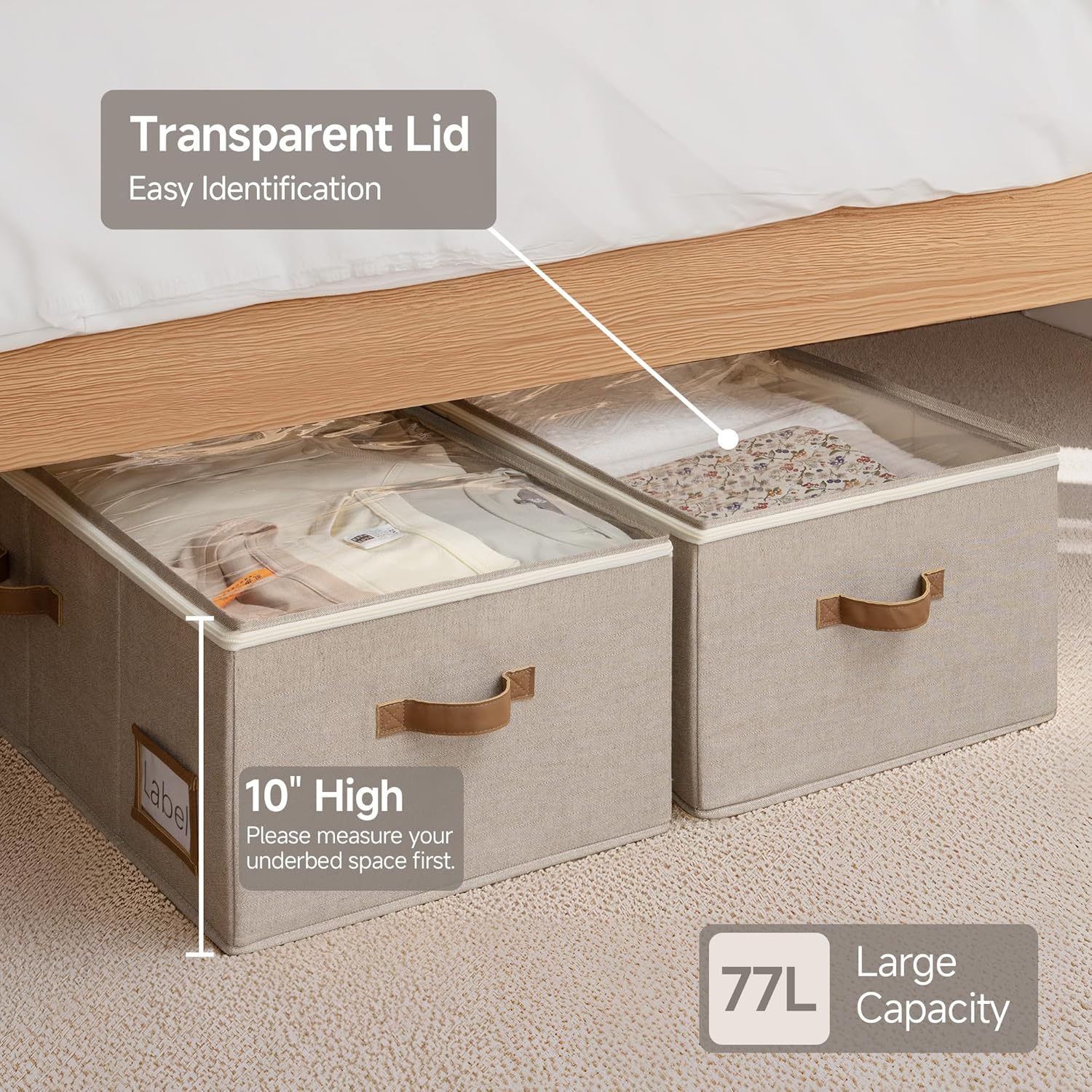 - Large Capacity: Measuring 30"L × 15¾"W × 10"H, this underbed organizer provides ample storage space for blankets, sheets, shoes, and clothes.