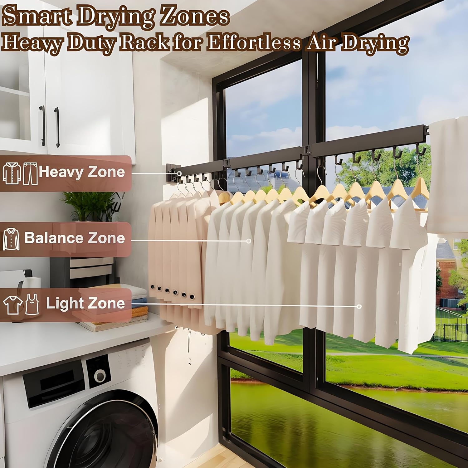 - 【Flexible Custom Drying 】360-degree rotating arms with 18 rotating removable hooks and a hidden retractable bar create customized drying configurations for diverse fabrics and spaces. Versatile for laundry room, bathroom, closet, patio and balcony.