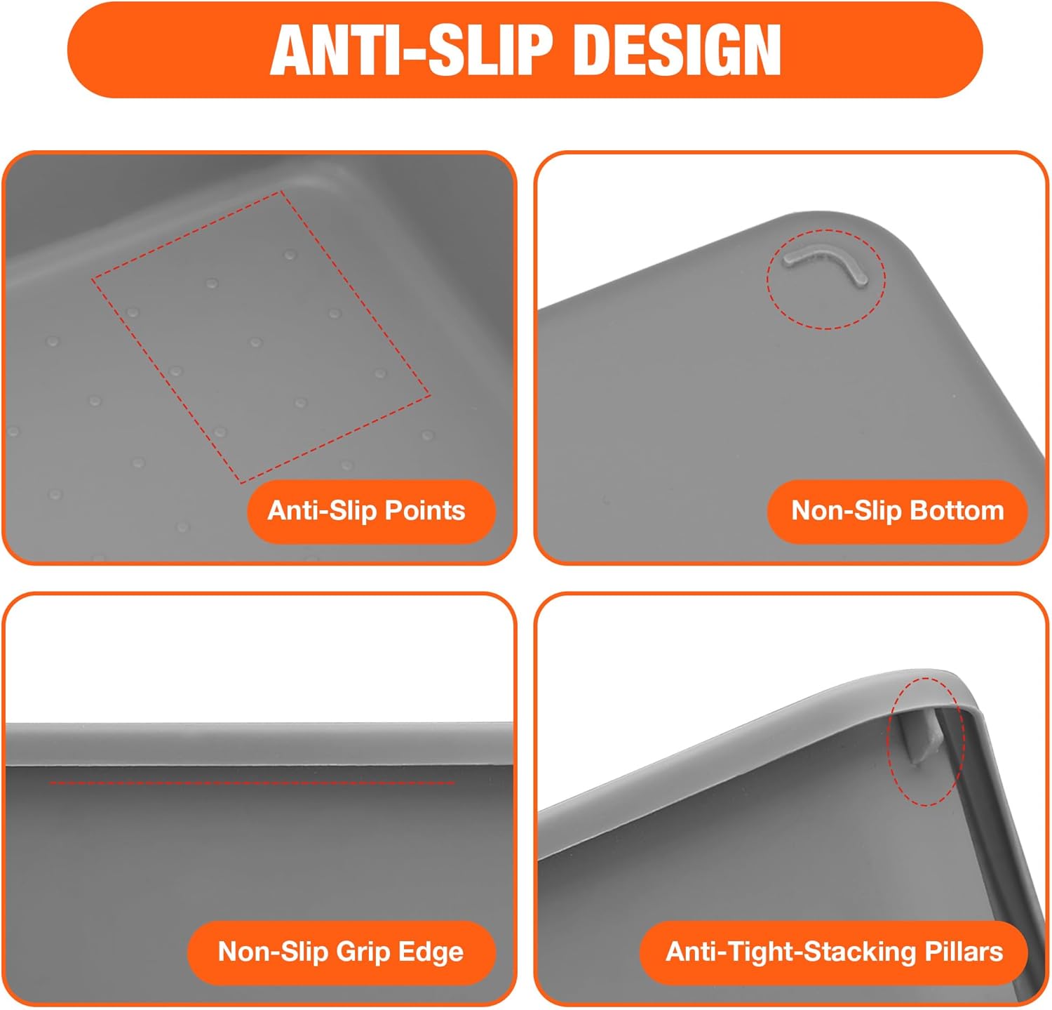 - Two-Tone Stackable Design: Available in vibrant orange and sleek gray, the dual-color design enhances visual appeal and makes item categorization easy at a glance. When not in use, the drawer organizer bins can be stacked to save space efficiently