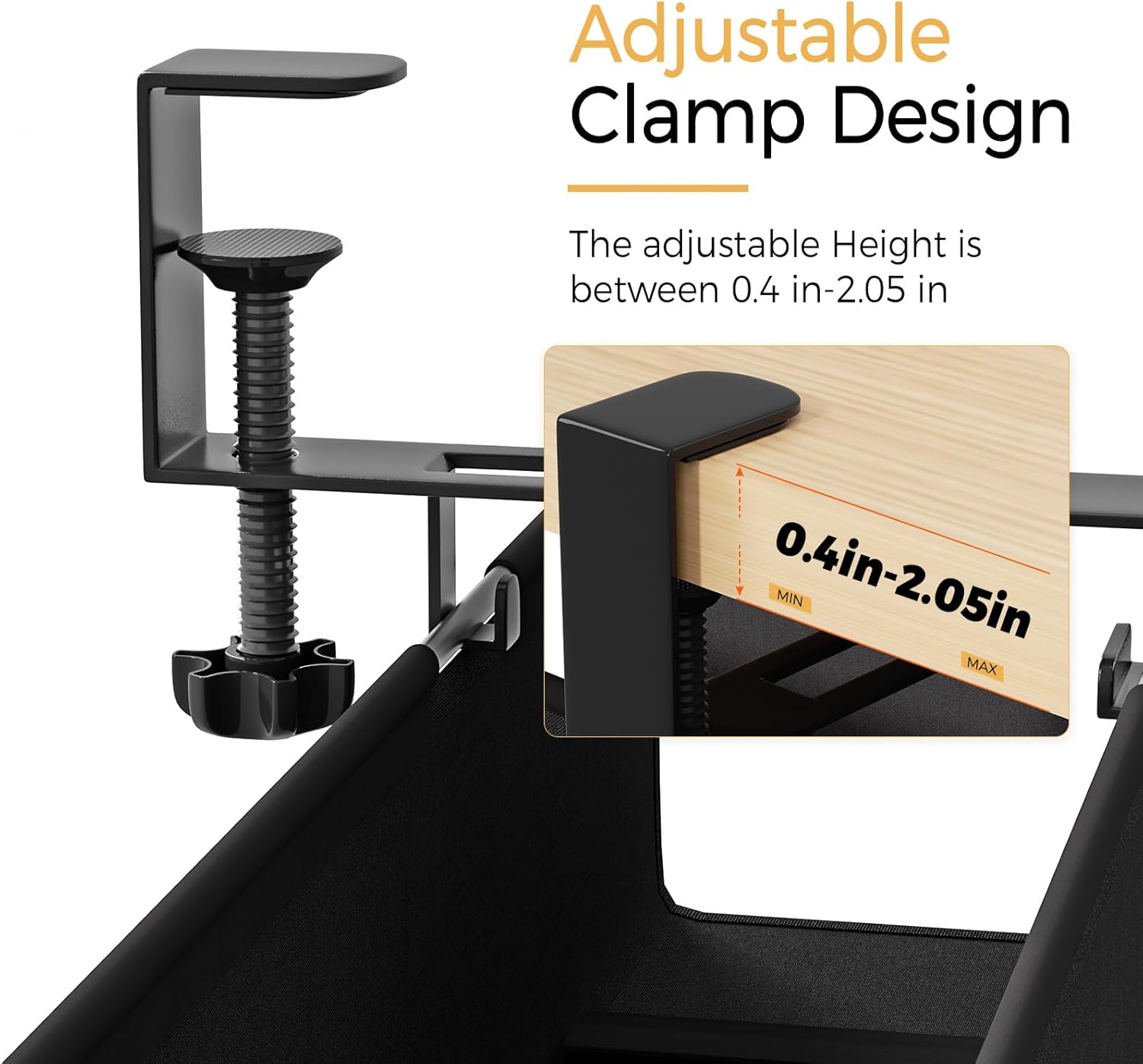 - SIMPLE INSTALLATION: No need to drill! Sturdy C-clamps secure to your desktop (fit well on all desk surfaces such as metal, wood, or glass), the special rubber pads will care for your desk and make sure there are no scratches during installation or use.