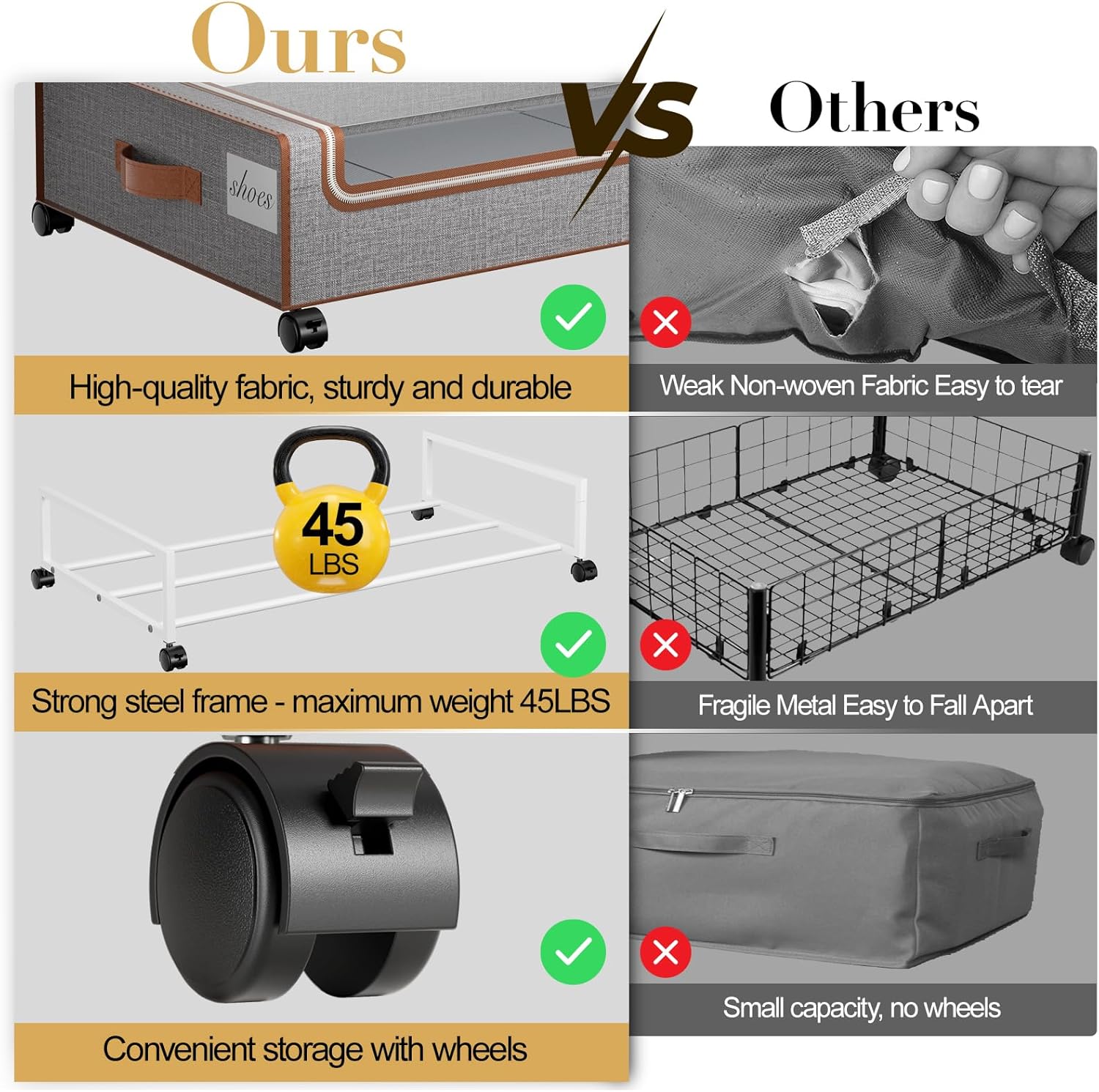 - Multipurpose: This underbed storage box easily holds out-of-season clothes, shoes, books, decorations, and more. Its compact size tucks neatly under sofas, in closets, or beside shoe cabinets. Plus, the under bed storage drawers fold flat when not in use, saving space and keeping your home organized