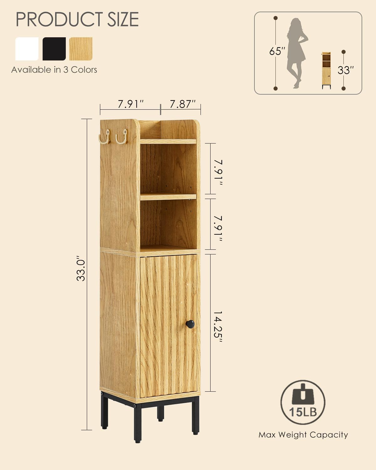 Bathroom Storage Cabinet, Small Corner Floor Hutch with Door and Shelves, Narrow Toilet Paper Cabinet, Bathroom Organizer with Adjustable Shelf, for Toile、Small Spaces