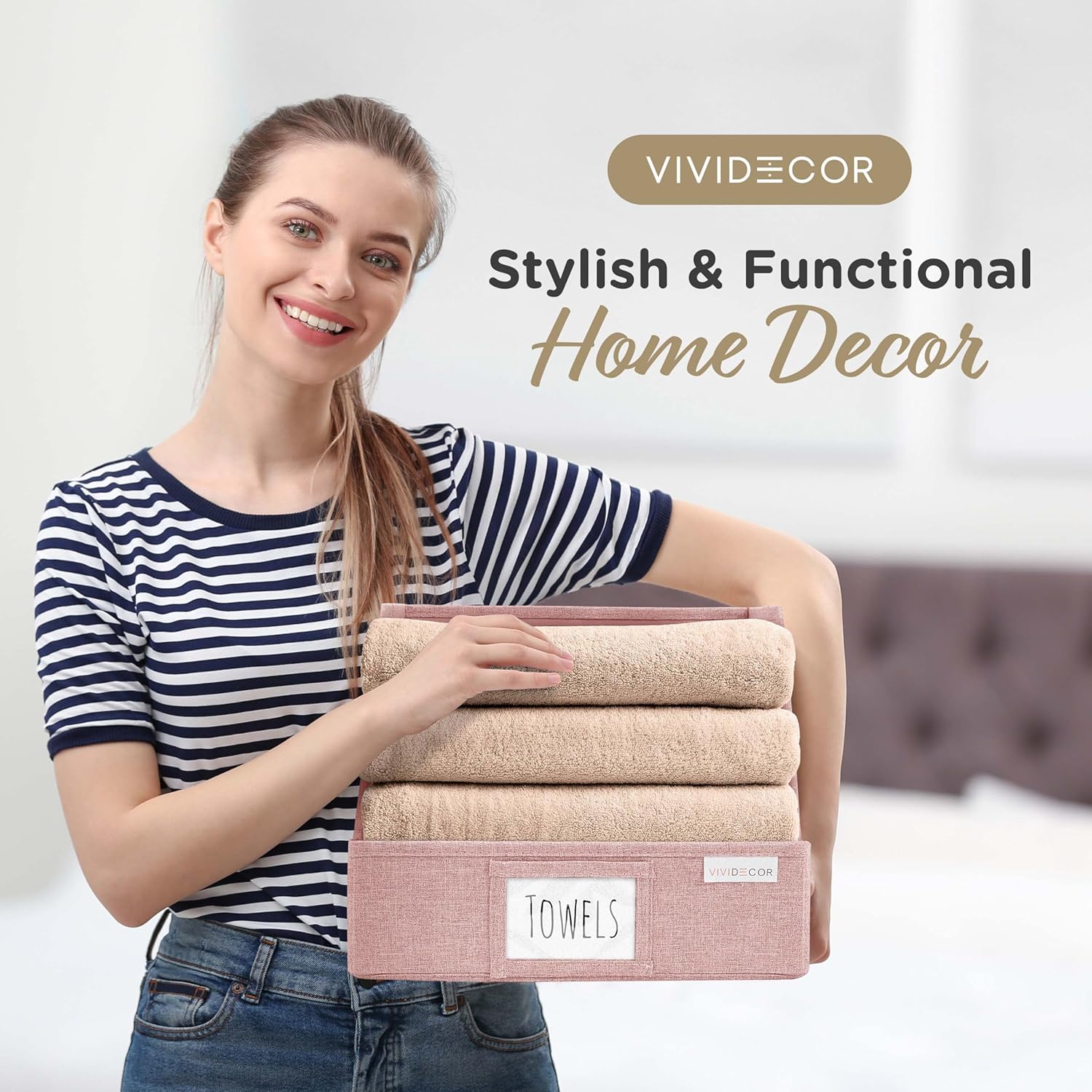 Closet Bins for Organization – 12x12x10 Foldable Boxes for Clothes, Fabric Trapezoid Storage Bins, Storage Baskets, Decorative Storage Baskets, Sweaters, Baby Clothes, Nursery– Pink, 3 Pack