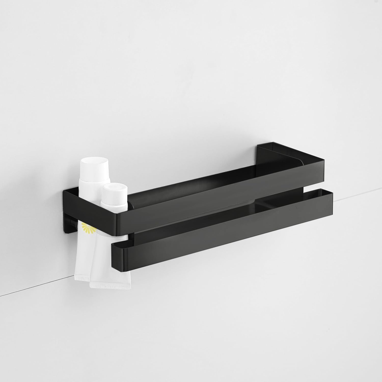 - STRONG ADHESION: Each bathroom organizers and storage comes with high-quality glue, these strong glues ensure that the adhesive shelf and your items are firmly fixed to most smooth and solid surfaces. To ensure the best adhesion, it is recommended to remove bubbles before use and keep the tape still for 72 hours.
