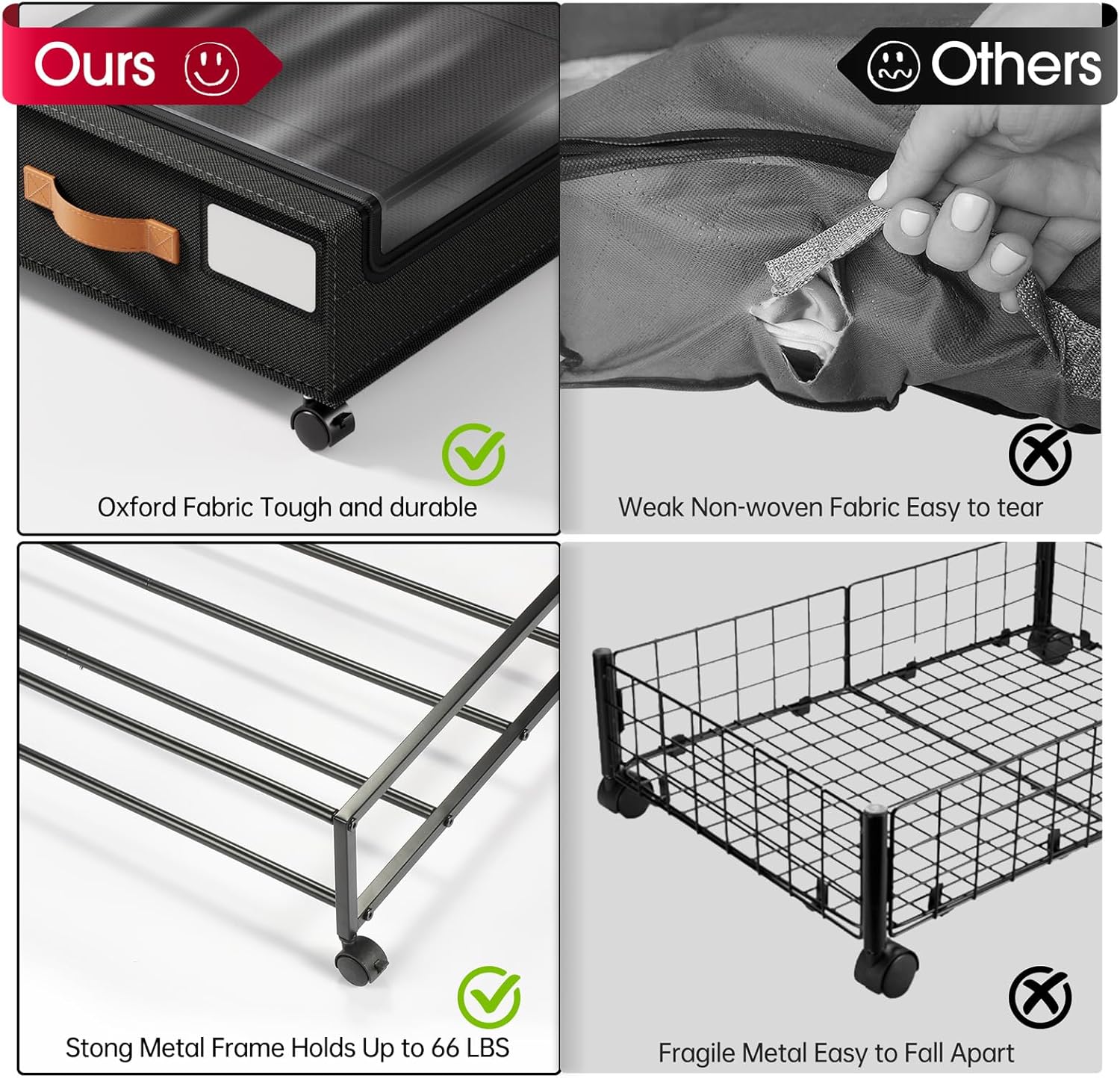 - Hold Up to 66lbs: Yecaye under bed storage with wheels is made of high quality 600D oxford fabric and sturdy metal frame, can hold up to 66 lbs, stronger than other fragile metal mesh, spacious capacity perfect for storing clothes, books, shoes and other heavy items also won't compromise stability and durability