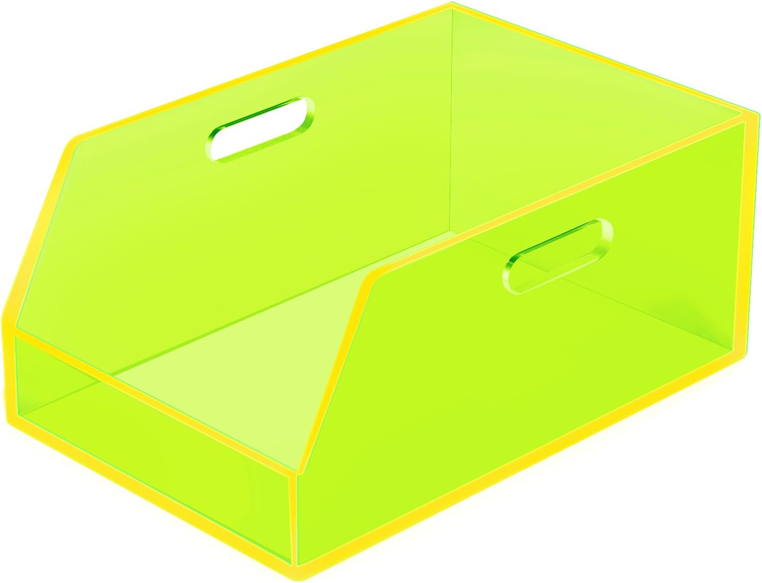 Stackable Storage Bin Organizer with Handles Acrylic Storage Container for Toy Pantry Kitchen Cabinet Bathroom Closet Office Organization, 11.4x7.5x5.1'', Neon Green