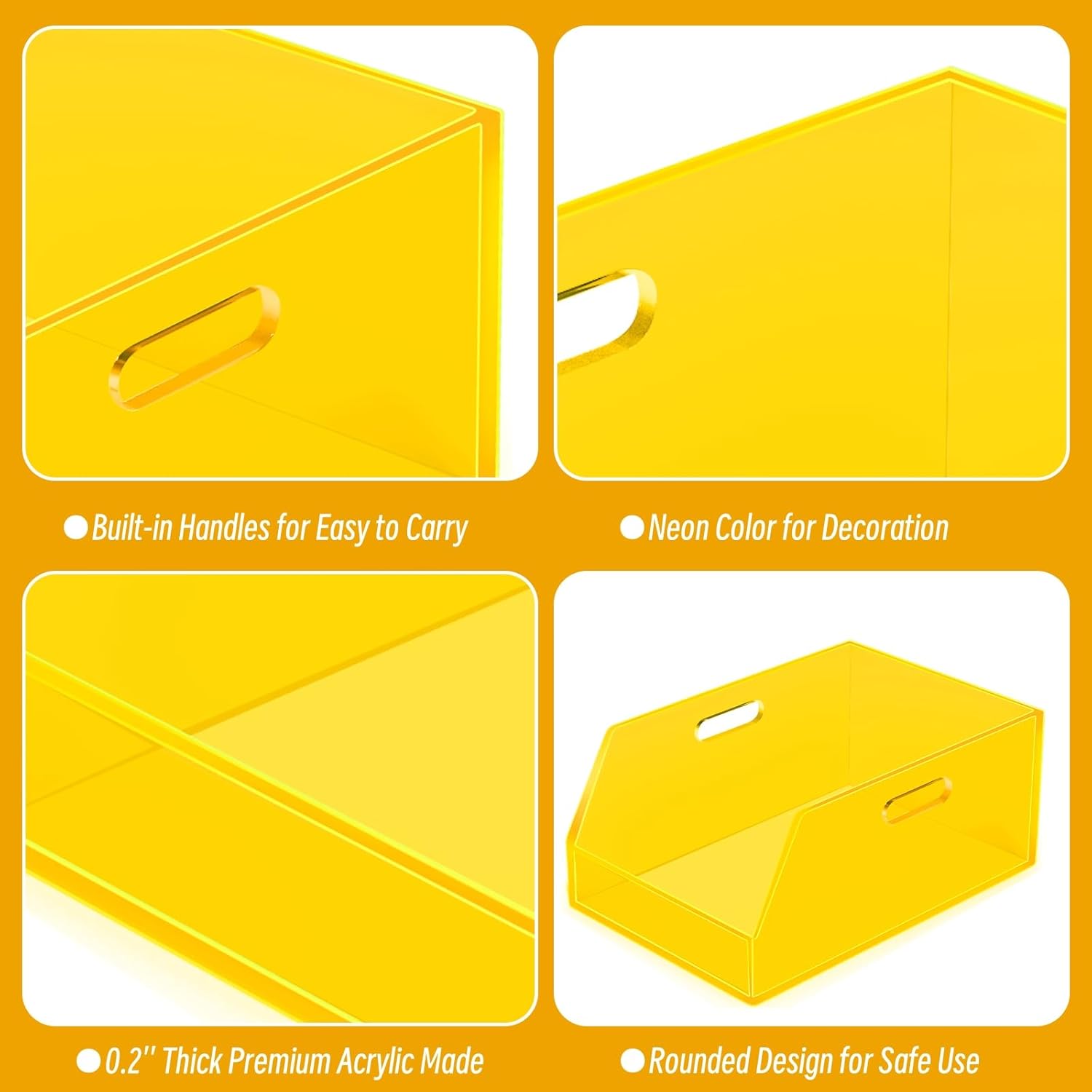 Stackable Storage Bin Organizer with Handles Acrylic Storage Container for Toy Pantry Kitchen Cabinet Bathroom Closet Office Organization, 11.4x7.5x5.1'', Neon Yellow