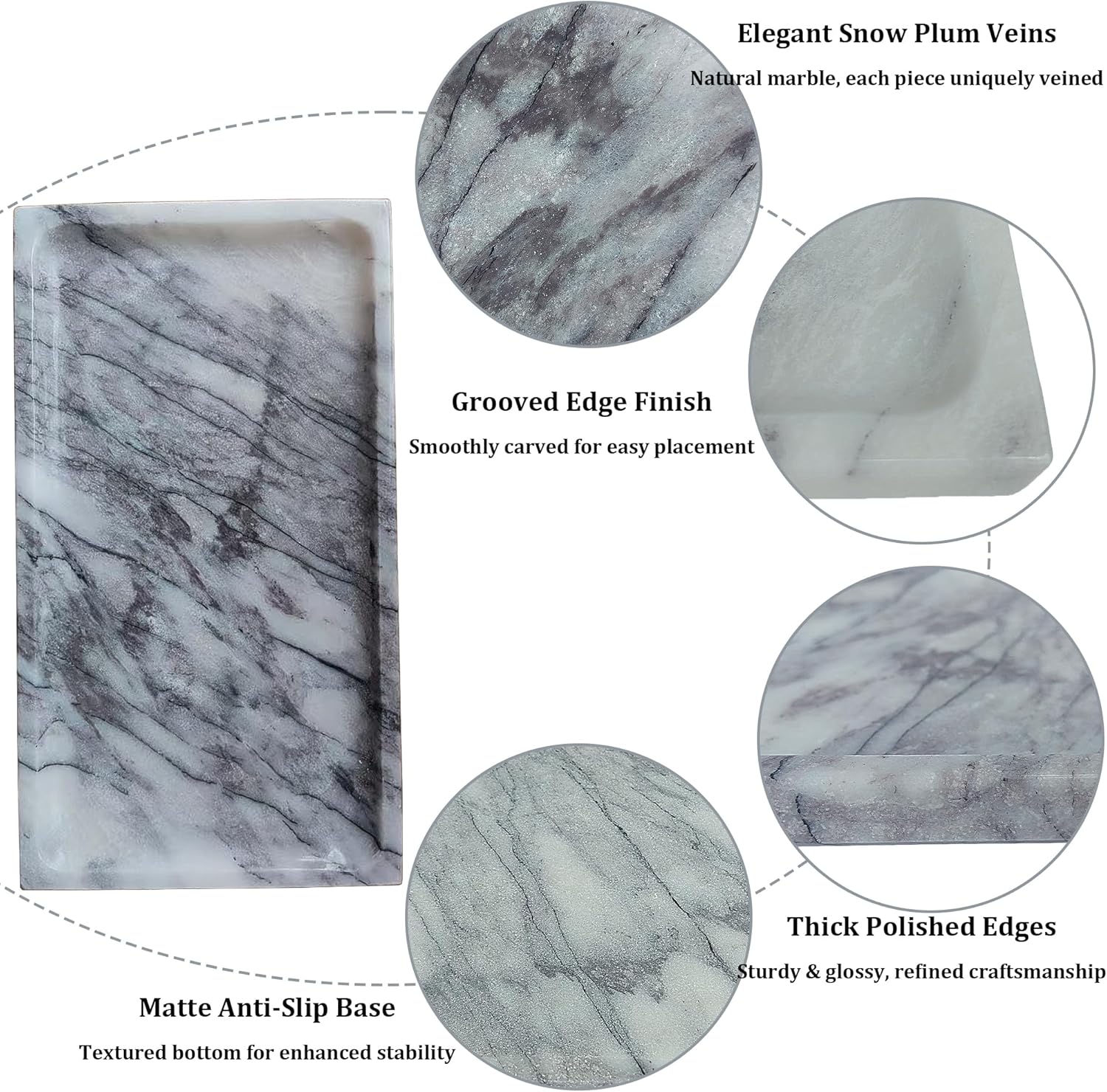 - WHITE MARBLE VANITY TRAY – ELEGANT NATURAL STONE DESIGN: Crafted from 100% real white marble with soft gray veining, this vanity tray adds a touch of timeless elegance to any bathroom or dresser. Its polished surface is smooth to the touch, perfect for luxury décor lovers.