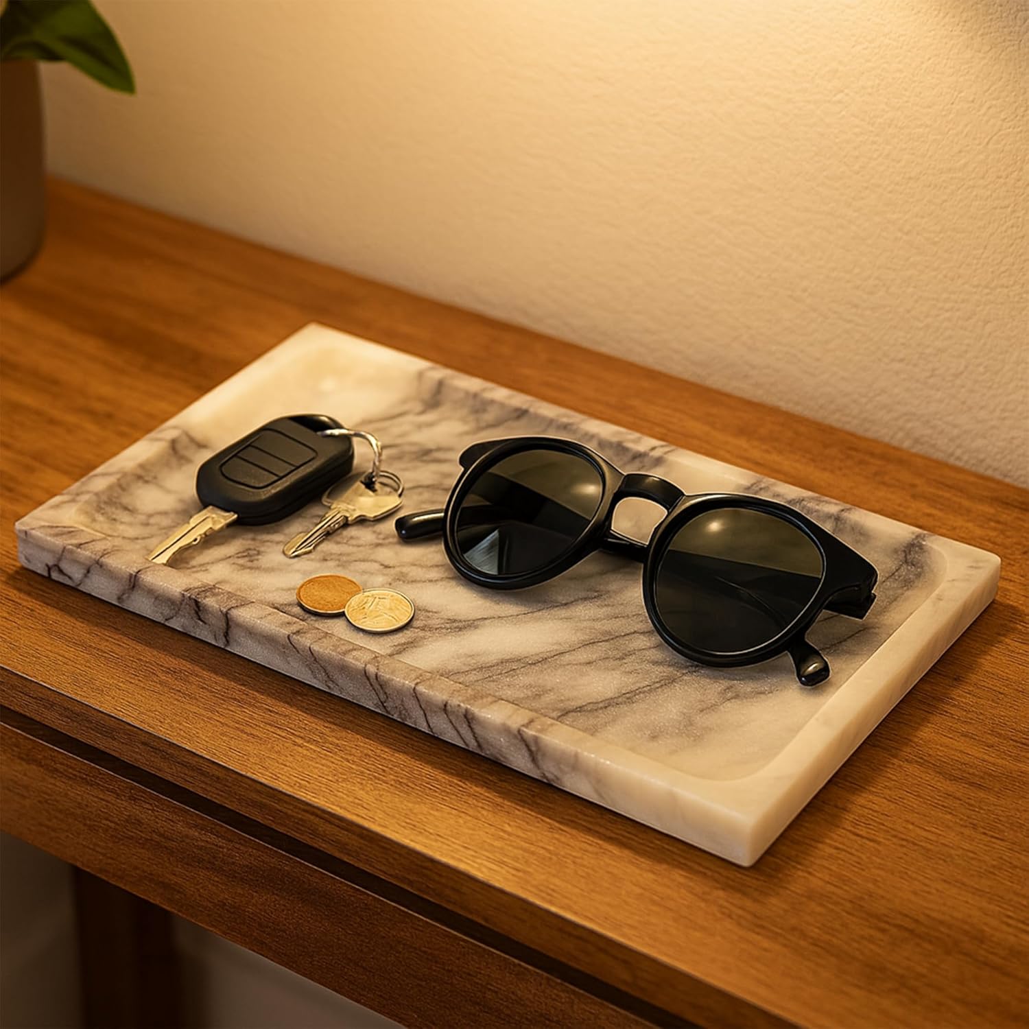 - STABLE AND HEAVY CATCHALL TRAY FOR ENTRYWAY & DRESSER: With its solid weight and non-slip base, this catchall tray is perfect for storing keys, coins, watches, or small décor on an entryway table or dresser. The marble construction ensures it won't slide or tip.