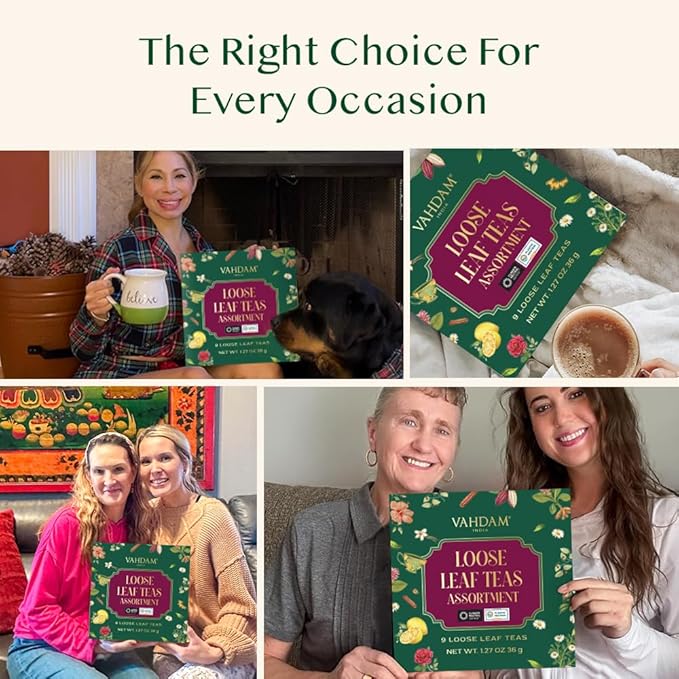 - 9 Unique Flavors in One Assortment – Enjoy a delightful variety including Hibiscus Rose, Chamomile Mint Citrus Green, Hibiscus Cranberry, Double Spiced Masala Chai, Strawberry Vanilla, Chocolate Vanilla, Mint Passionfruit, Lychee Rose, Turmeric Ginger, and Herbal blends.