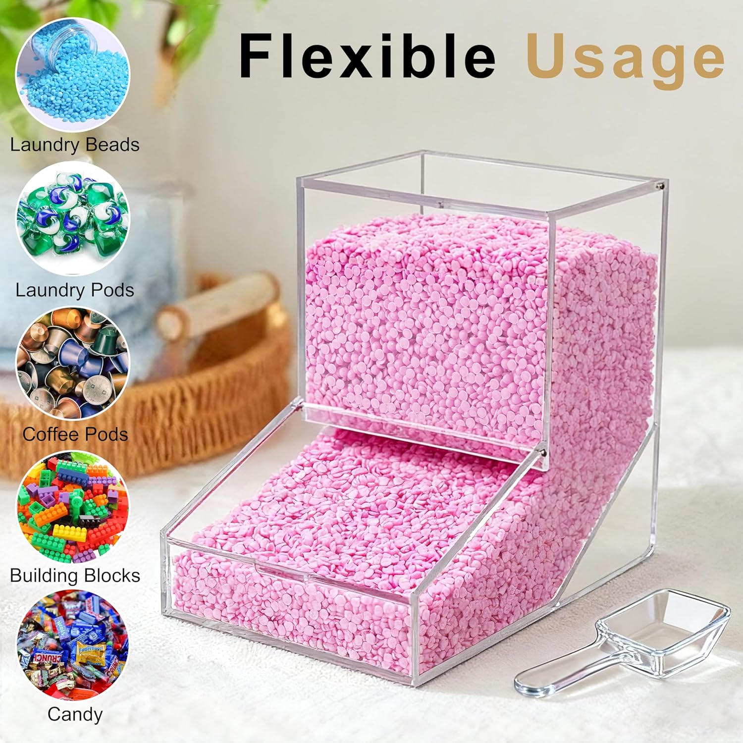 - Tilted Base Design: Laundry beads container slope dispense detergent forward like magic. Reduce wasted laundry beads stuck in corners.