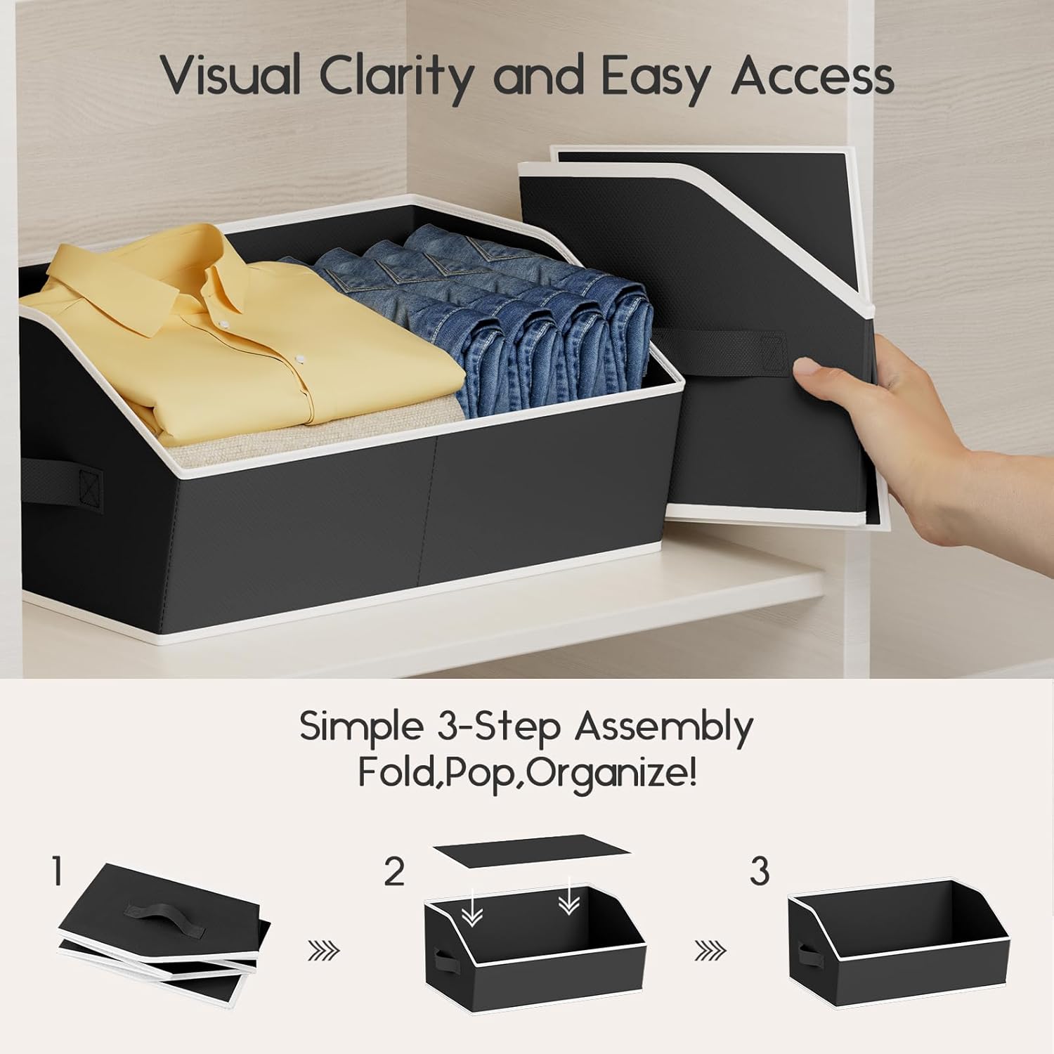 Large Closet Organizers and Storage Bins - 10 Pack Trapezoid Storage Baskets for Shelves, Foldable Fabric Baskets with Handles Ideal for Closet, Basket, Wardrobe and Shelf Storage, Black