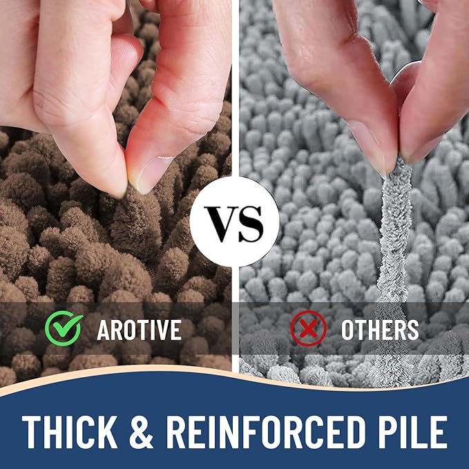 - Anti-Skid Backing: Arotive chenille bathroom rugs feature a non-slip bottom consisting of sturdy mesh PVC material that stops the bath mat from shifting and skidding. The middle layer is 4 mm memory foam, which can let you feel more comfortable when wrapping into the rugs. WARNING: Place bath mat on CLEAN DRY FLAT FLOOR ONLY. Water under bath rug can cause it to slip. Always keep the bottom of bath rug dry