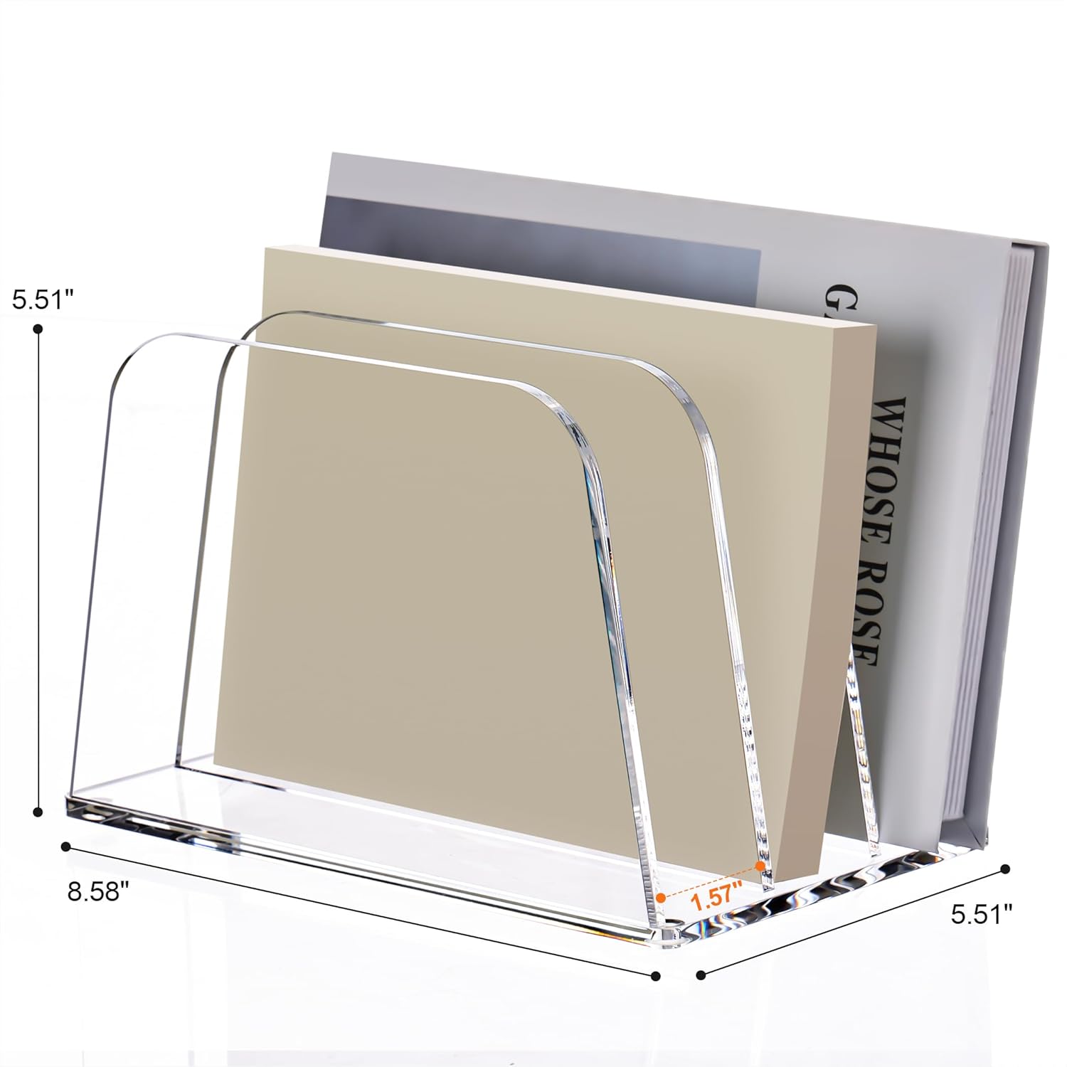 - 📂Heavy-Duty Acrylic Construction: Crafted from premium clear acrylic, this upright file sorter withstands daily use while maintaining a sleek, modern look. The reinforced base and smooth rounded edges ensure durability and a comfortable experience.