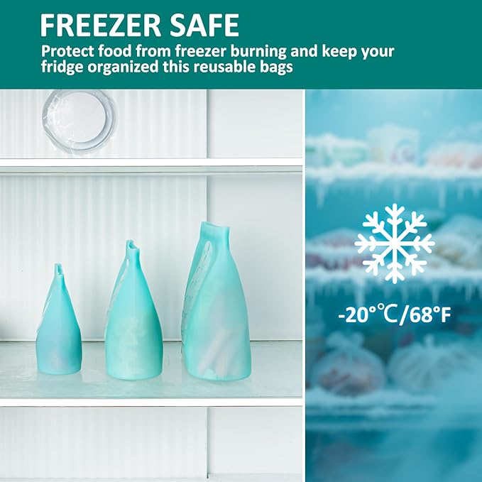 - PURE SILICONE - SAFE & DURABLE: Crafted from 100% food-grade silicone, our reusable ziplock bags are free from PVC, lead, chlorine, phthalates, and BPA. Non-toxic and odorless, they provide a safe storage option for your family’s food. Built to last, these silicone bags feature a thick, durable design for long-term use. Lightweight and easy to handle, they offer a convenient storage solution for everyday needs