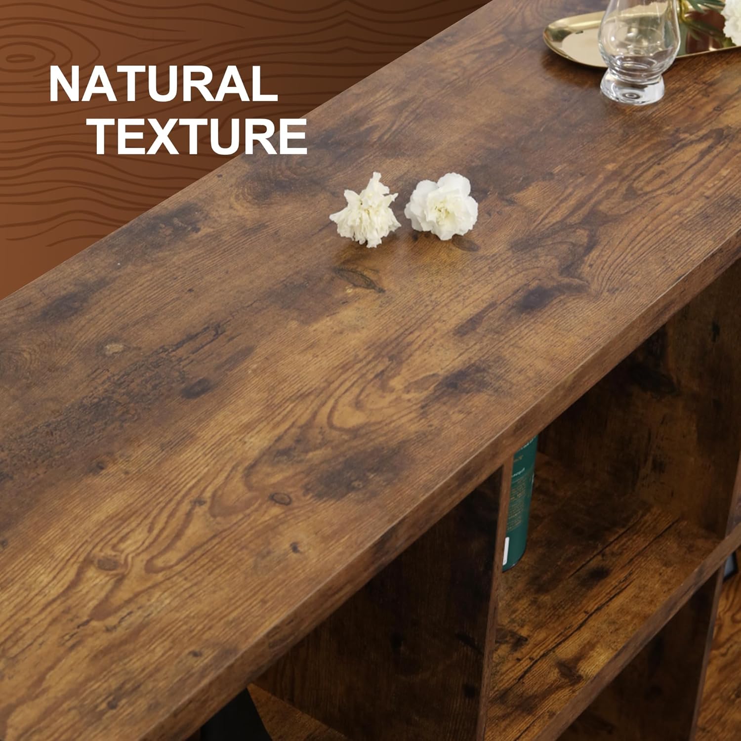 6 Cube Storage Organizer Bookshelf, Industrial Horizontal Bookcase, Accent Cubby Shelf, Media Console Table for Living Room, Home Office, 47.2 Inches, Rustic Brown