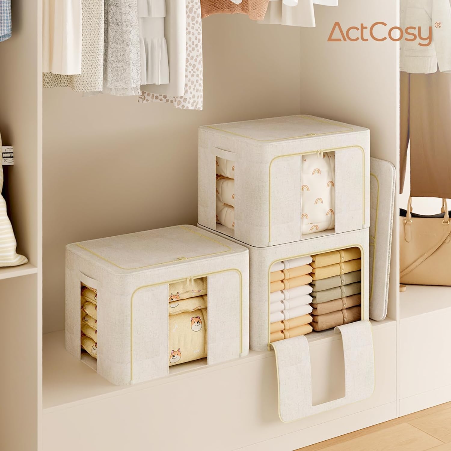 - [Lare Capacity for Clothes Storage]- Measuring 19.7 x 15.5 x 12 inch in dimension, our linen storage box with clear windows provides 60L volume for clothes storage. Not only being sweater storage for closet, they can also store quilts, summer clothes, comforters, duvets, blankets, pillows and so on.