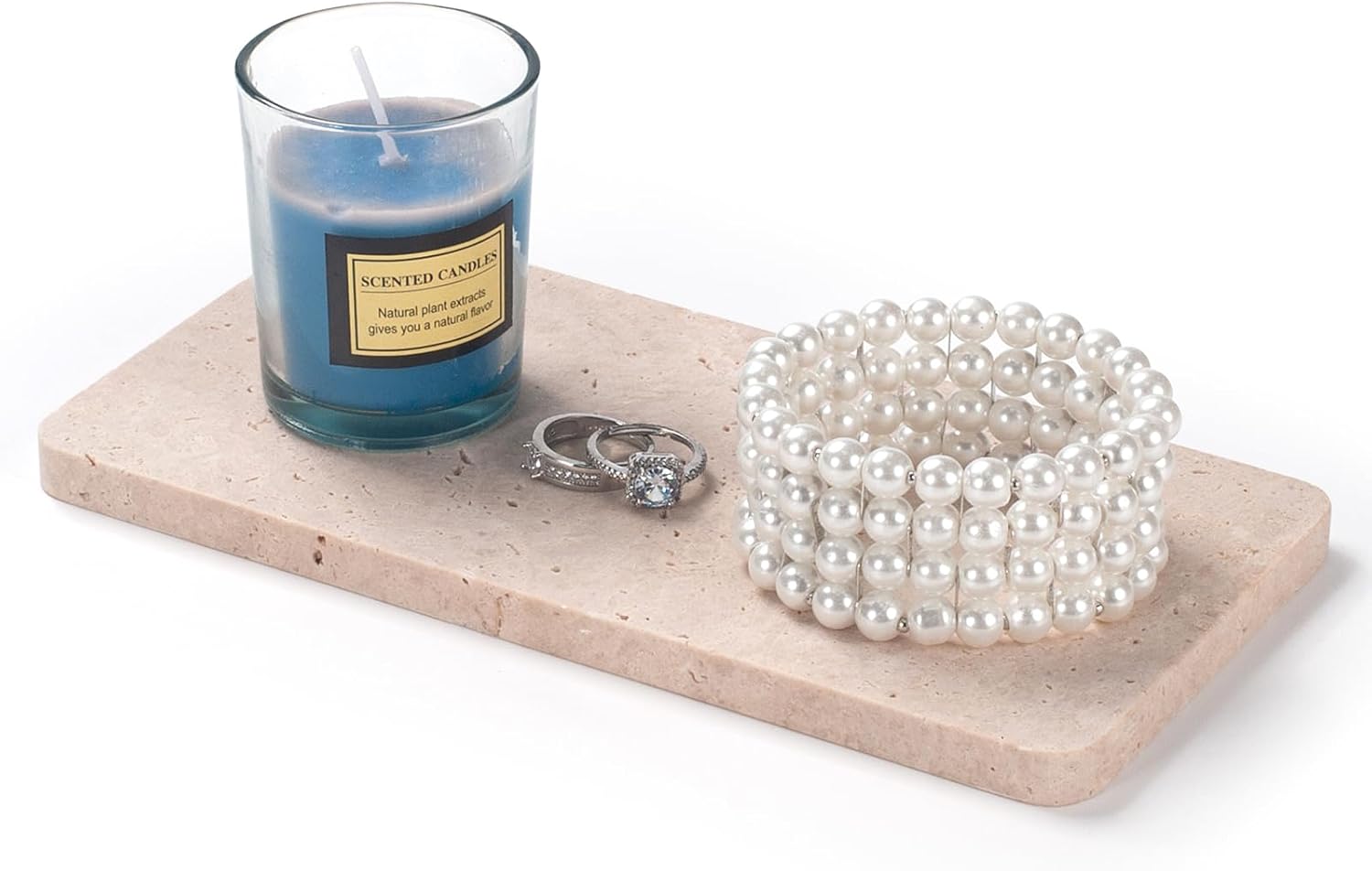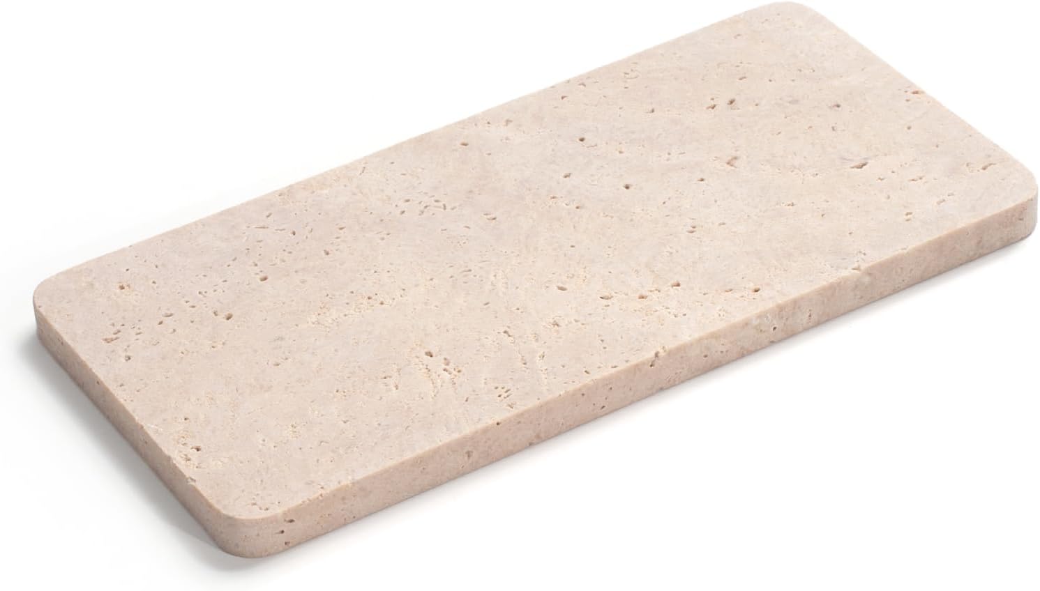- Sturdy and Durable Tray: Made from 100% natural travertine stone, solid and long-term stable. Carefully cut, and well-done high grade polished with edgeless design. Each Tray is unique for natural stone.