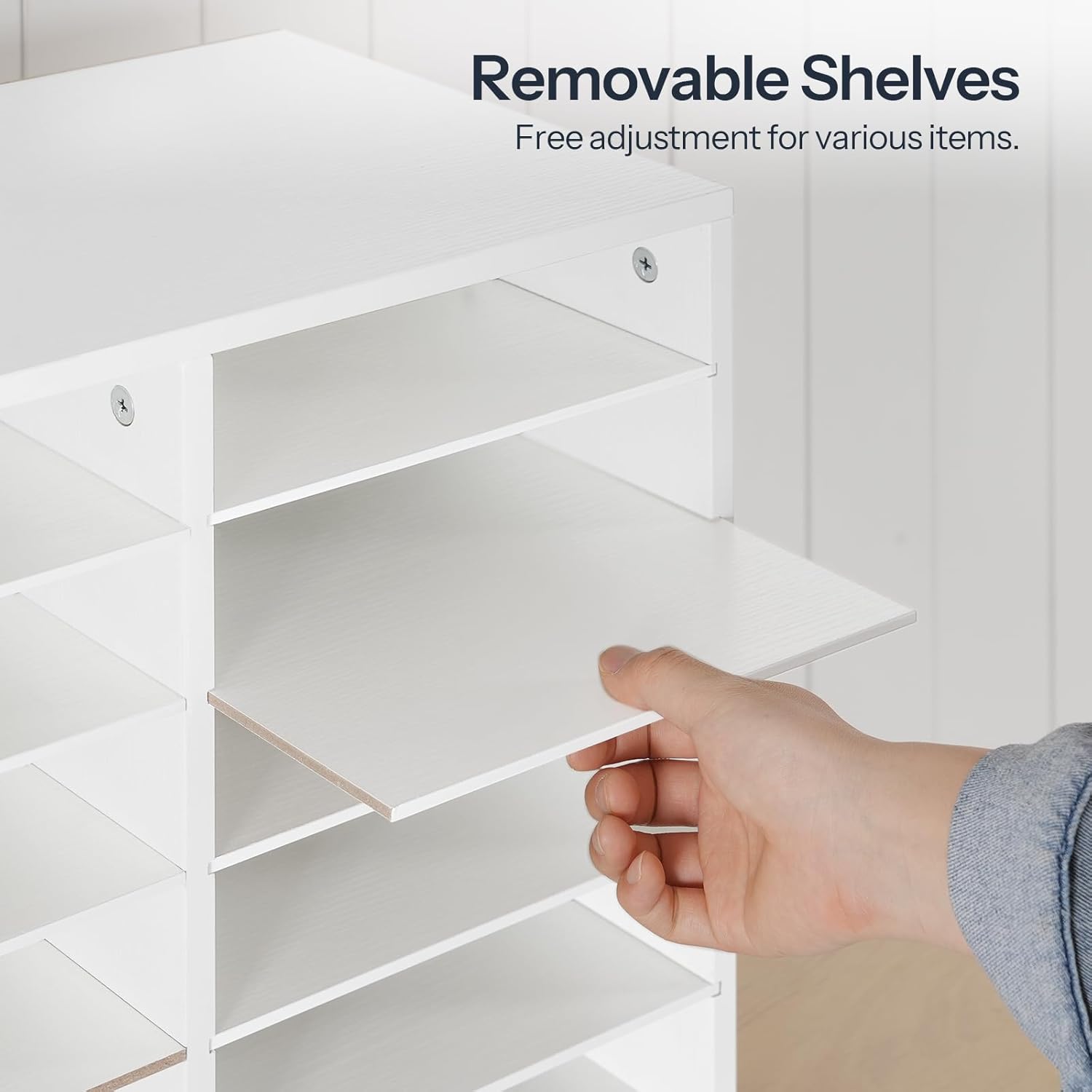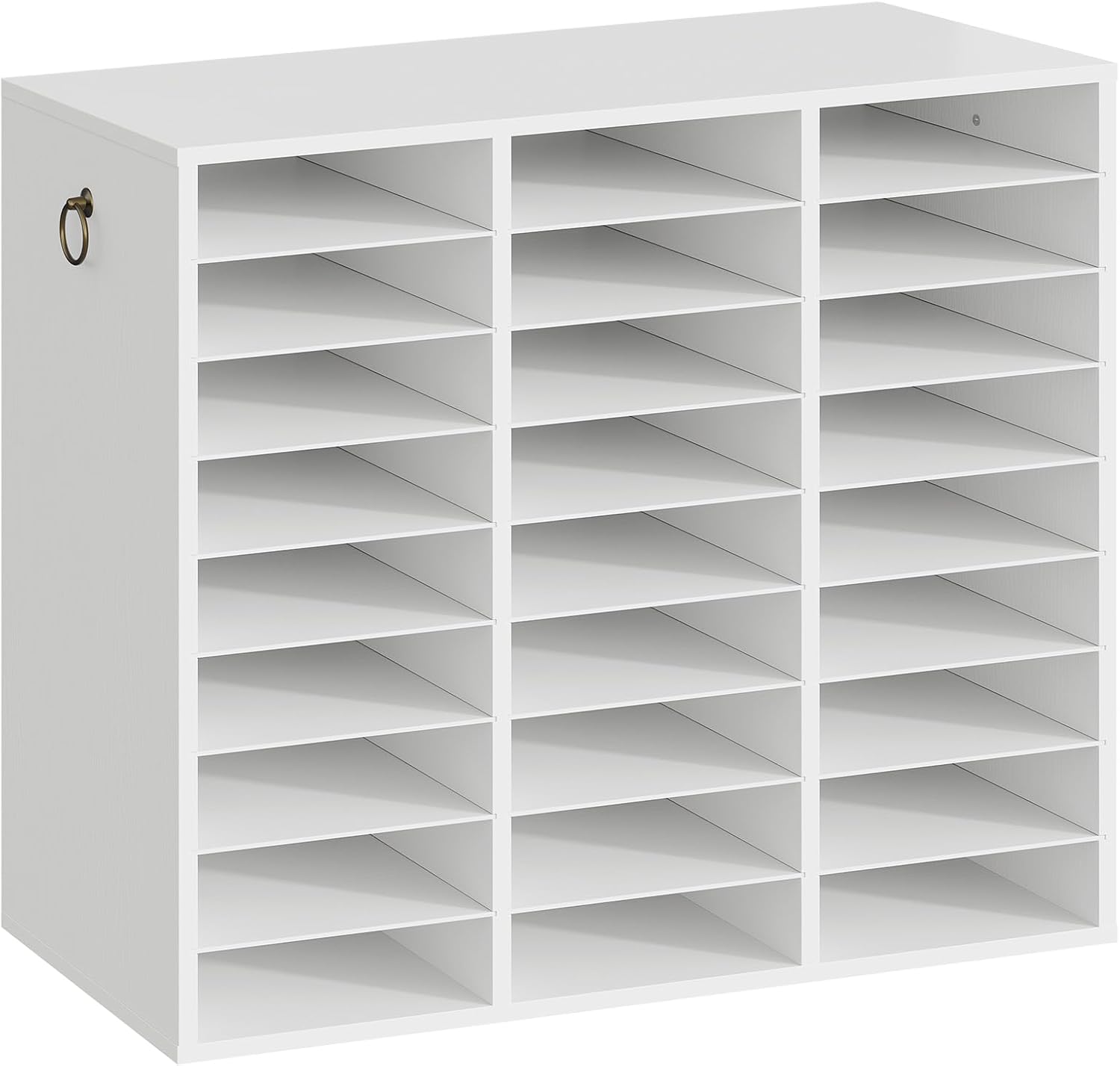 HOOBRO Literature Organizer, 27 Compartments Wooden Mail Organizer, Countertop Literature Sorter with Adjustable Shelves for Home, Office, School, Student Mailbox for Classroom, White WT27WF01
