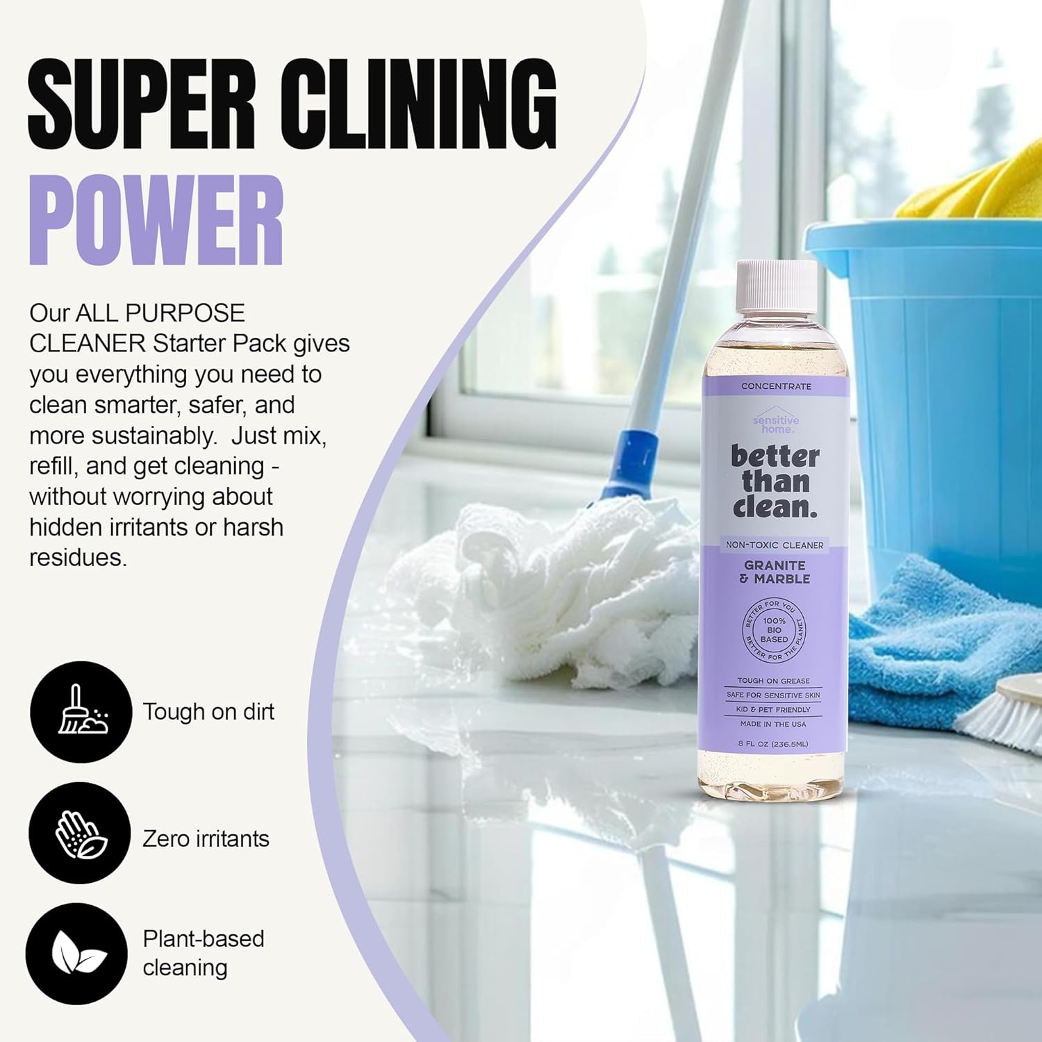 Marble & Granite Cleaner Concentrate - Plant-Based, Non-Toxic, Fragrance Free Cleaning Products - Slate, Marble, and Natural Stone Cleaner, – 8oz Makes 4 Bottles