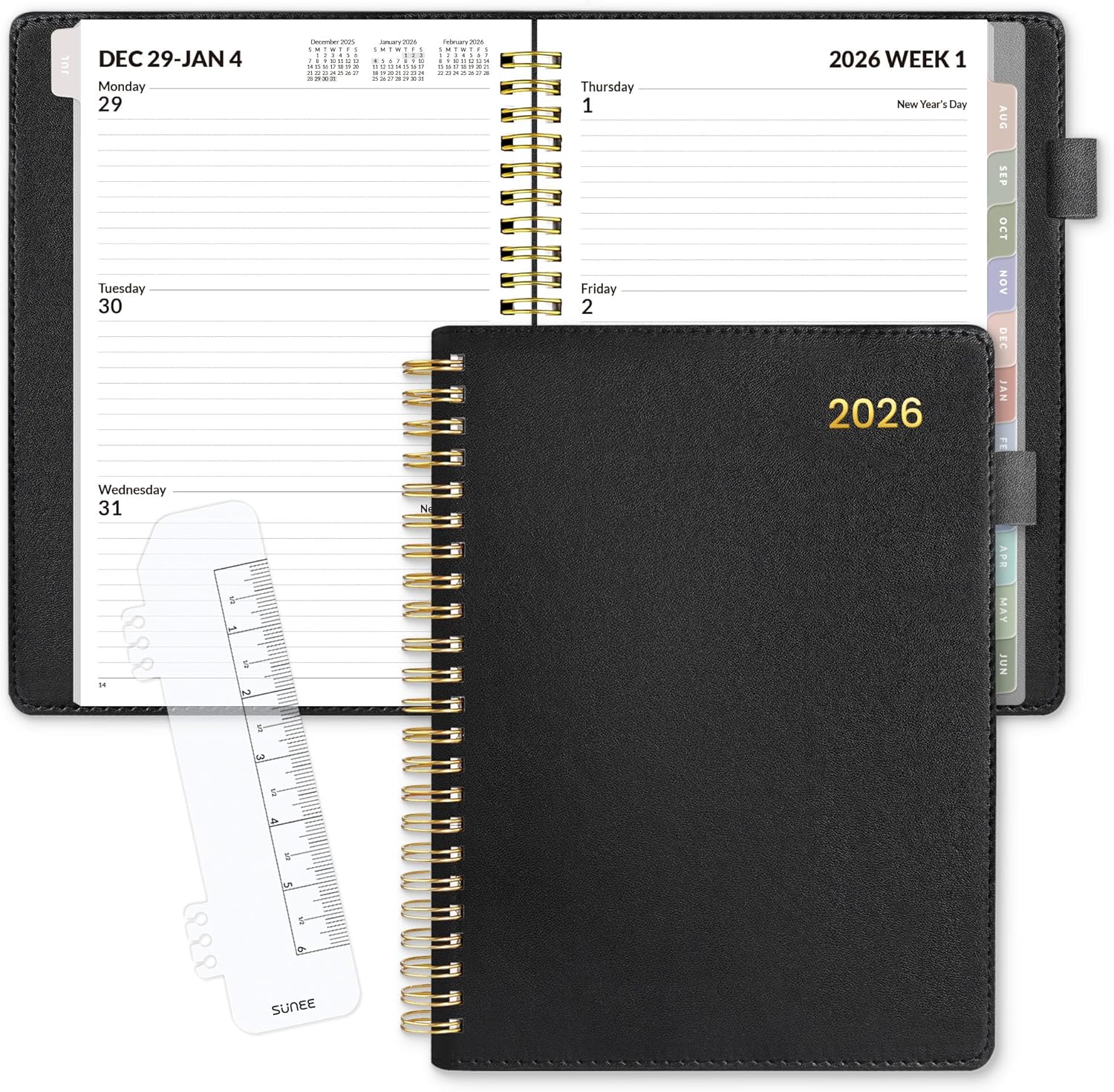 SUNEE 2026 Weekly & Monthly Planner 6.4"x8.5"- 12 Month (January 2026 - December 2026), Vegan Leather Cover, Pocket, Bookmark, Notes, Monthly Tab, Black