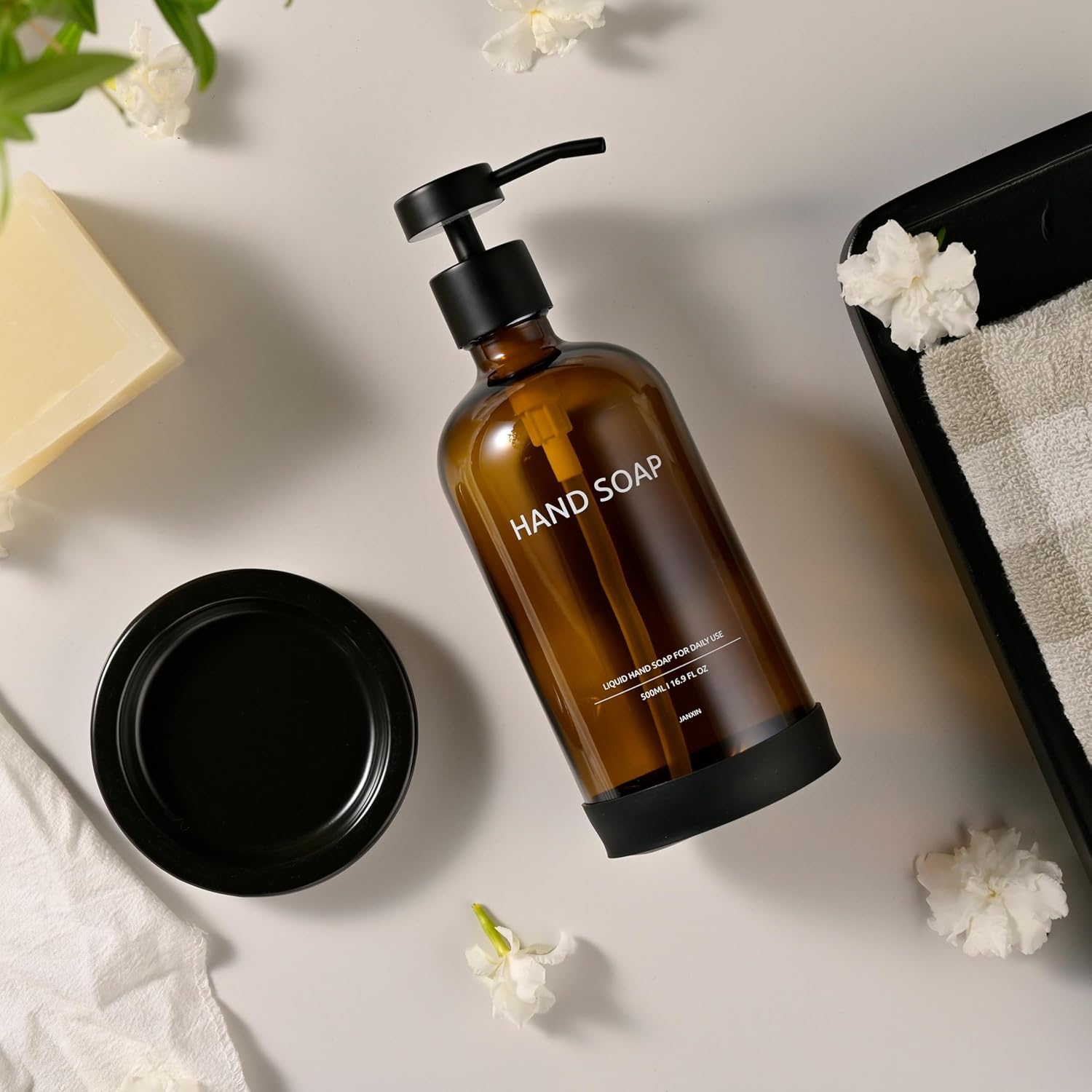 - LUXURY SOAP DISPENSER SET: Transform your kitchen or bathroom decor instantly with our luxurious kitchen soap dispenser set, This set includes one 16.9 Oz/500 premium glass bottles with 2CC stainless steel pumps, one ceramic tray . Great for upgrading your kitchen and bathroom countertops with this stylish soap dispenser set