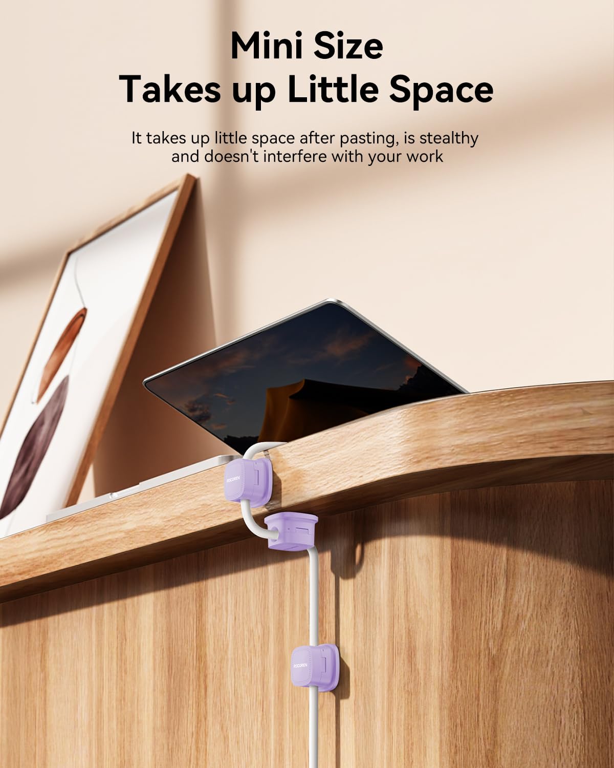 6 Pack Cable Management Cord Organizer, Magnetic Cable Clips-1s Lock, Rocoren Desk Adhesive Cord Cable Clip Wire Holder Keeper for Phone Charger Wire, Nightstand, Car, Office, Desktop Accessory,Purple