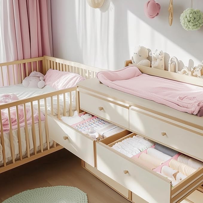 Criusia Drawer Organizer Clothes, 21 Pack Dresser Organizer for Baby Clothes, Underwear, Sock - Foldable Closet Organization and Storage Dividers Bins for Nursery, Bedroom (Pink)