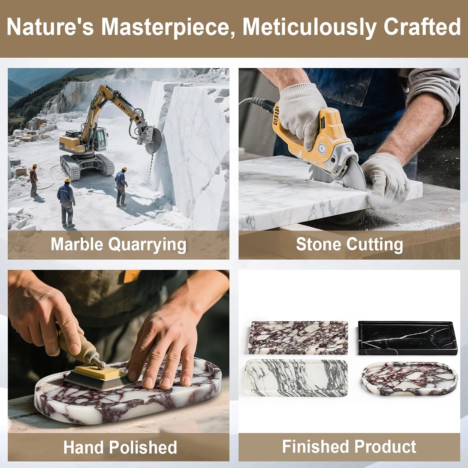 - 100% Natural Marble Tray: Made from premium natural marble, crafted through manual quarrying, precision cutting, multi-step polishing, and finishing to ensure high-quality. Our marble has its own unique pattern, ensuring that each tray has an irreplaceable natural beauty, and is one of a kind. Unlike ordinary ceramic or resin trays, this marble tray offers safety, eco-friendliness, durability, and a smooth finish