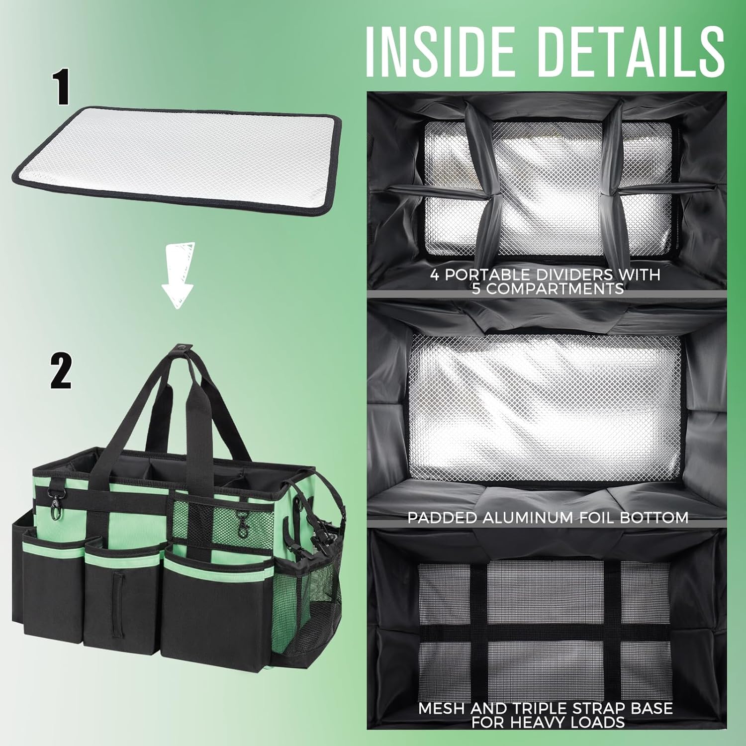 Wearable Cleaning Caddy, Cleaning Caddy Supplies Organizer with Handle & Shoulder Straps for Housekeepers, Under Sink & Car Cleaning Tool Organizers Bag with 4 Foldable Divider (MintGreen)